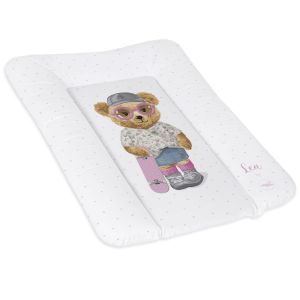 Пеленальный матрасик не промокает, покрыт водоотталкивающей пленкой, легко чистится влажной салфеткой и моется под водой. В качестве наполнителя применяется пенополиуретан, синтепон или поролон. Все материалы безопасные для нежной кожи младенца – не вызывают аллергических реакций и высыпаний, не впитывают запахи и не пахнут. По бокам матрасика по всей длине расположены выступающие бортики, которые становятся непреодолимым препятствием для подвижной новорожденной крохи. Матрасики для пеленания переносные, легкие, длинной 60-70 см. Ставятся на комод, кровать, стиральную машину в ванной и на детскую кроватку. После гигиенических процедур прячется в ящик кроватки или за шкаф – высота не более 10 см.