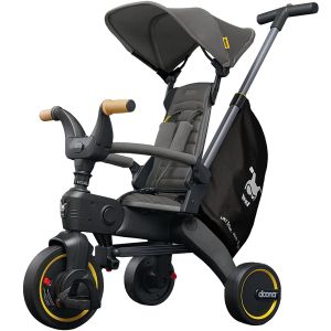 - Для ребенка от 1,5 до 4 лет – разблокируются руль и педали, снимается подножка, при необходимости, снимаются ремни безопасности, защитный бампер и ручка. Детский трехколесный велосипед приводится в движение педалями и поворачивается ребенком или взрослым, ручкой.