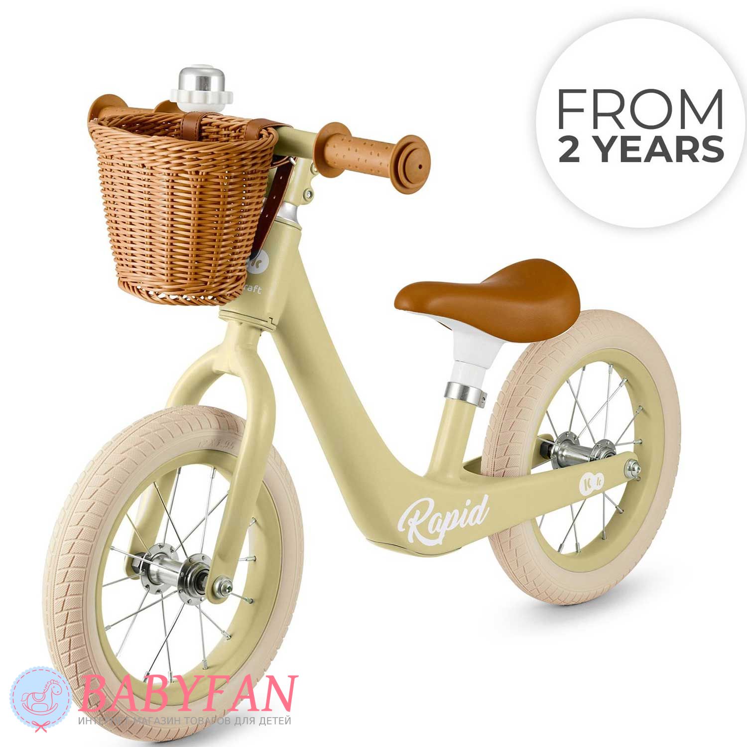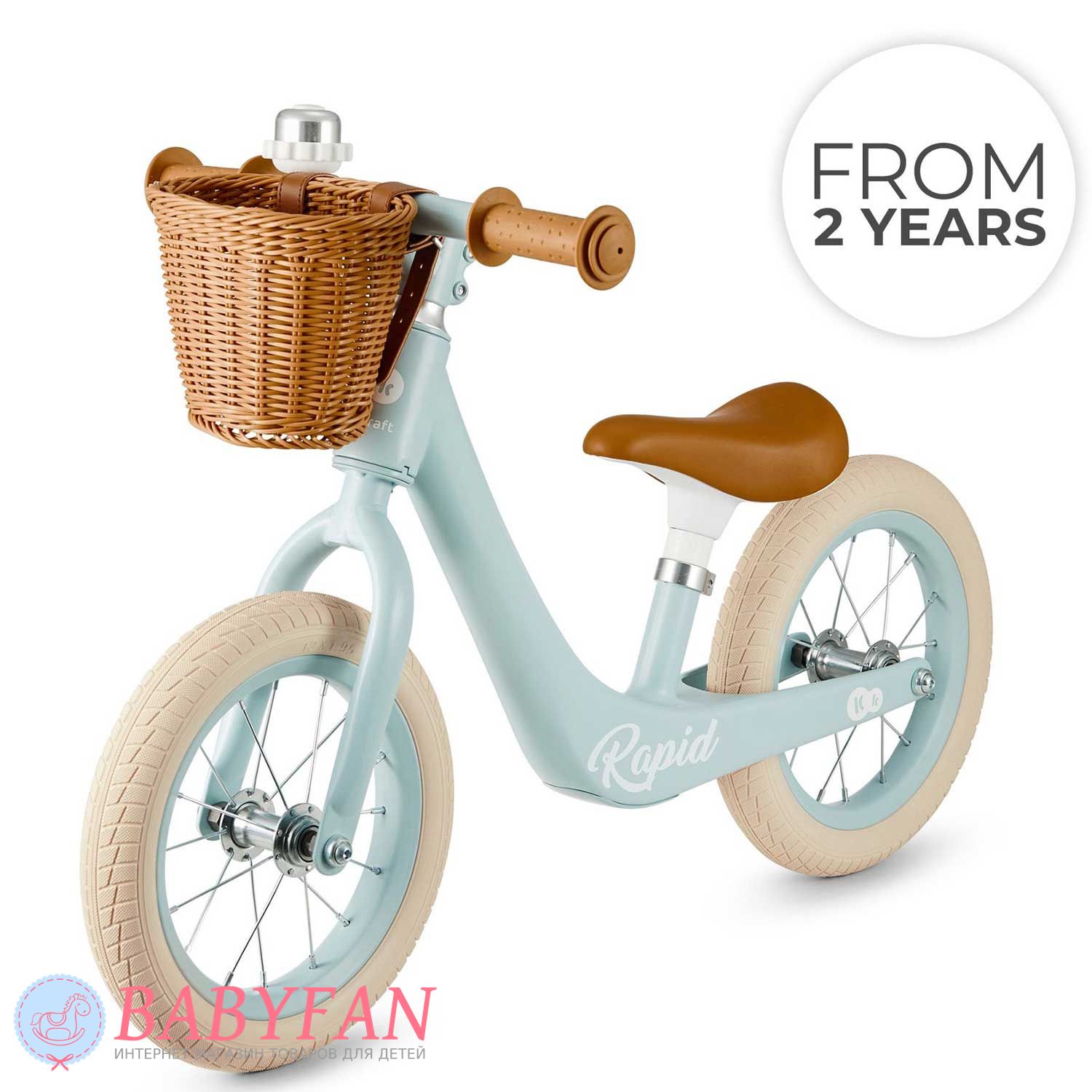 Kinderkraft Rapid – стильный двухколесный беговел с надувными колесами для детей от 2 до 6 лет, весом до 35 кг и ростом выше 80 см. Выполнен в двухцветном ретро-стиле в нежных пастельных тонах. Изготовлен из качественных и прочных материалов: легкая рама из магниевого сплава, стальная передняя вилка, резиновые покрышки колес, сиденье из экокожи. Благодаря большим колесам на качественных шарикоподшипниках беговел быстро разгоняется и отлично управляется. Поможет ребенку научиться самостоятельно держать равновесие и баланс.