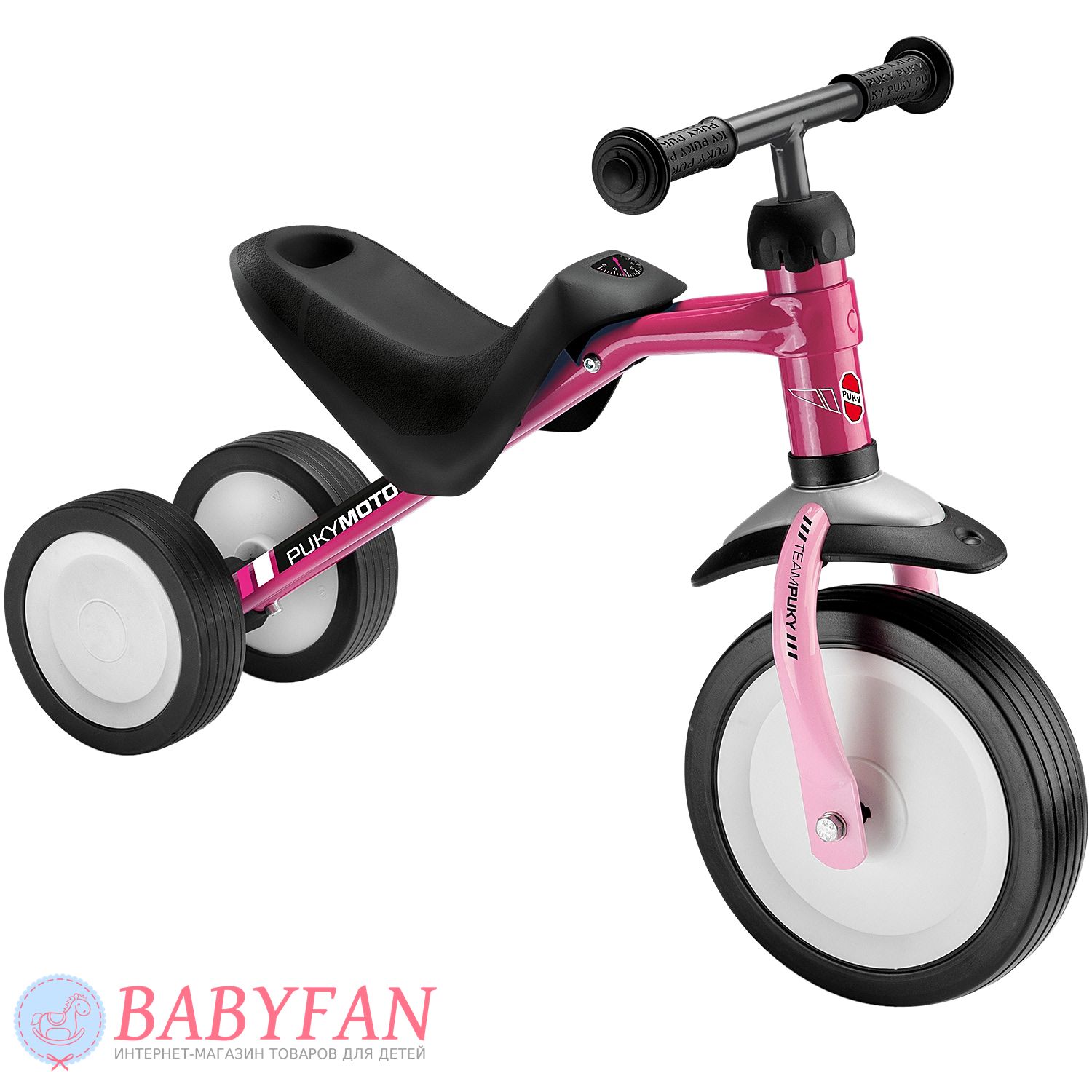 - беговел Puky Pukymoto разработан для детей старше 1,5 года, ограничения по росту – 83-90 см (высота ноги 28-38 см), максимальная нагрузка 20 кг;