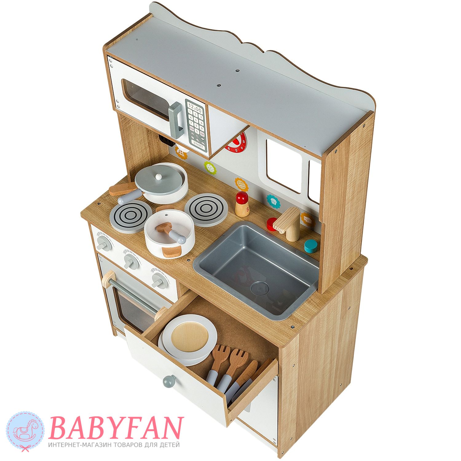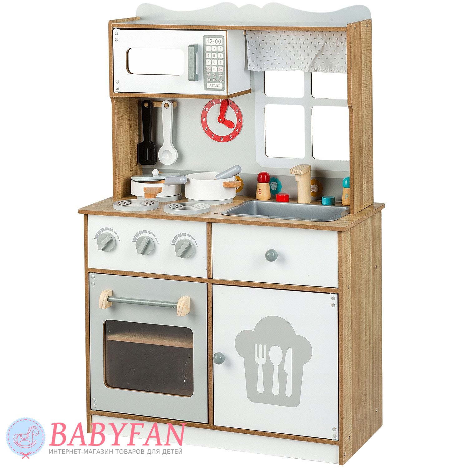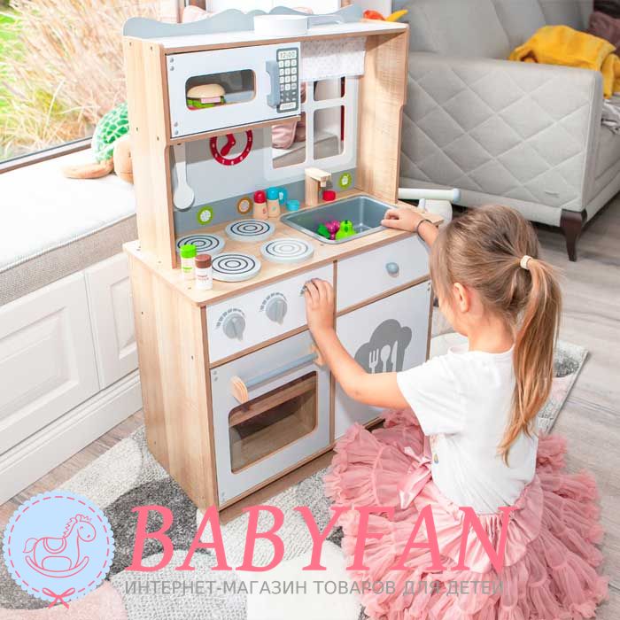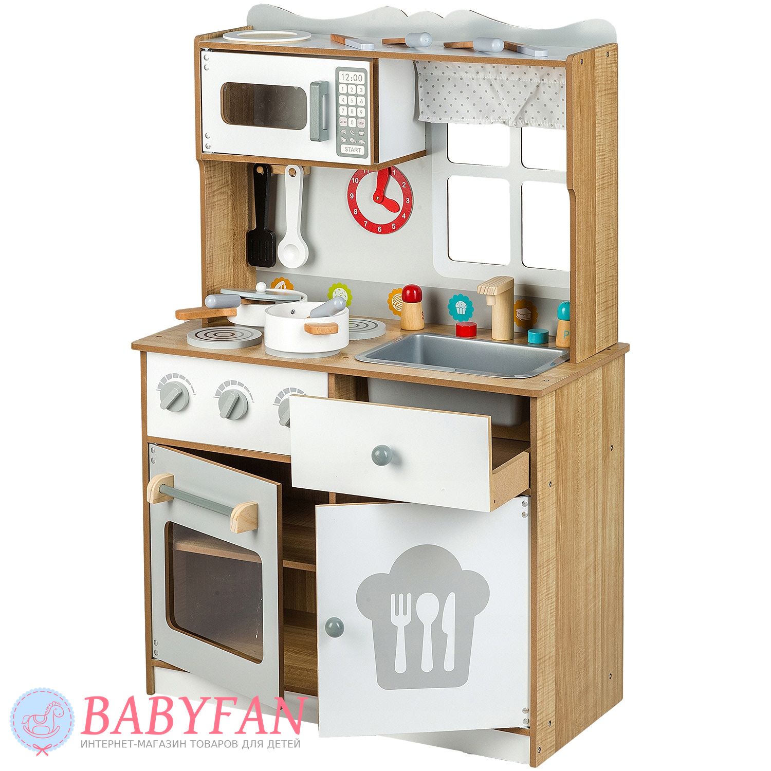 Детская деревянная кухня EcoToys 7253 – полноценная кухня, несмотря на то, что она довольно компактна, благодаря чему поместится в любой детской комнатке и отлично впишется в интерьер. Сделайте процесс готовки интересным и увлекательным вместе с набором кухни EcoToys
