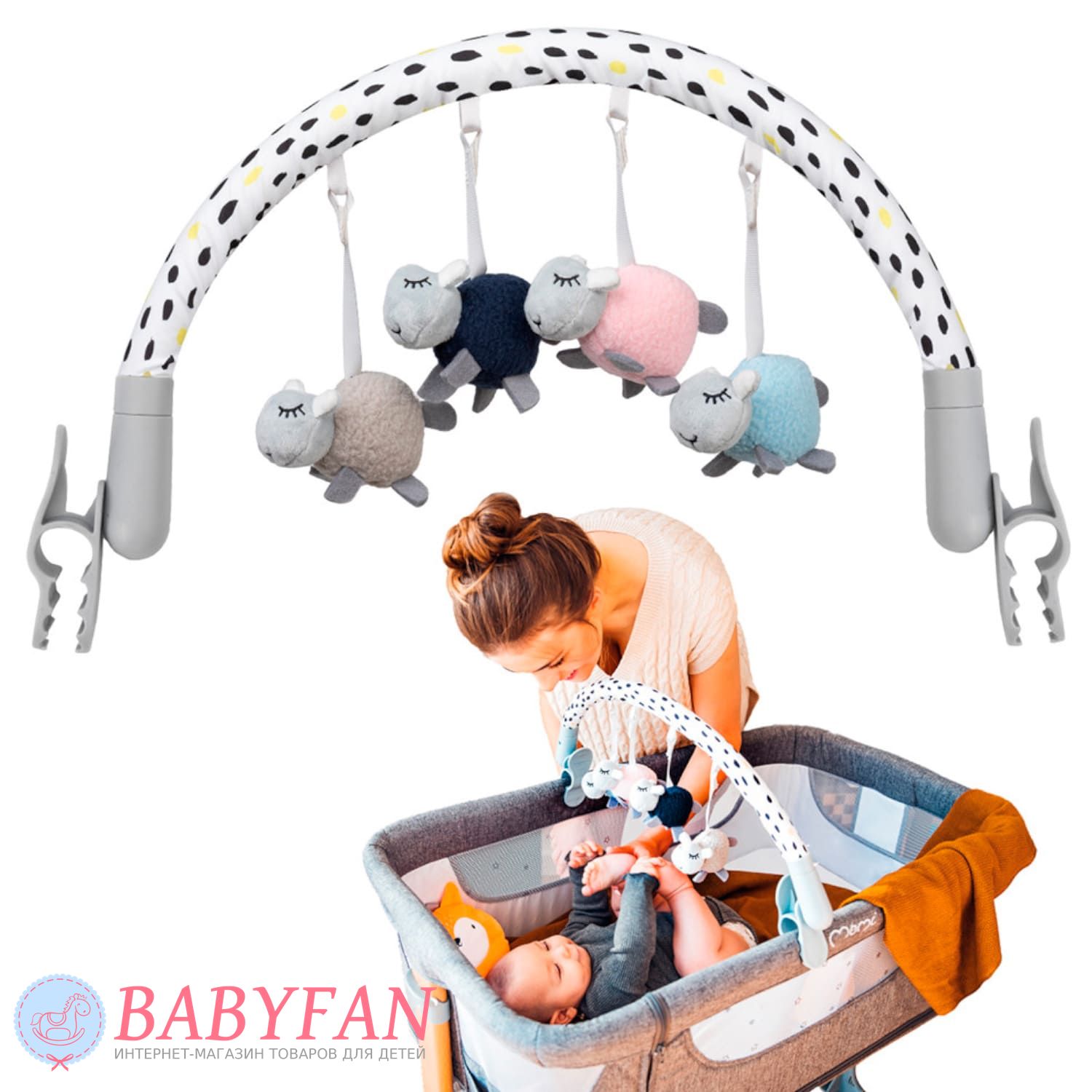 - яркие подвесные игрушки для развития малыша;
