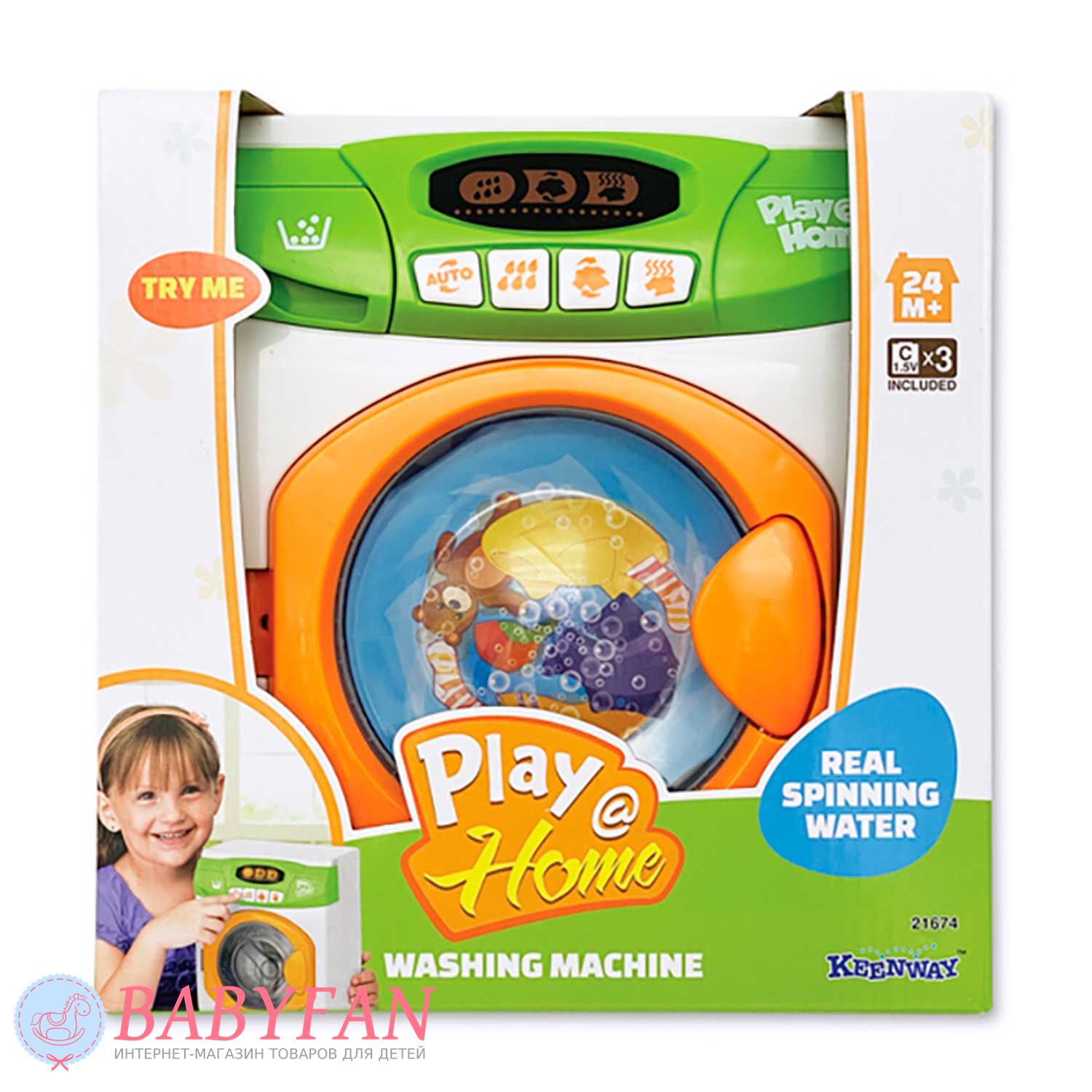 Игровой набор "Стиральная машина" Keenway (21674) – это интересная и полезная игрушка для ребенка. Известно, что все дети стремяться участвовать в жизни взрослых и охотно помогают по хозяйству, иногда изрядно мешая при этом. Стиральная машина Кееnway сделает игру Вашего ребенка более реалистичной: у нее не только крутится барабан, но и имеются звуковые эффекты. Полностью имитирует процесс стирки, можно загружать кукольную одежду, барабан крутится. Стиральная машинка снабжена дисплеем, на котором отображаются все этапы стирки. Под дисплеем находится четыре кнопки: автоматическая стирка, набор воды, стирка и отжим. При включении набора воды вы услышите звук наливающейся воды, затем нажмите на кнопку для стирки и увидите, как начнет вращаться барабан, наполненный мыльной пеной. После стирки нажмите кнопку отжима, и барабан начнет очень быстро крутиться, отжимая белье. После окончания отжима, машина подаст звуковой сигнал. Открывайте дверцу и забирайте вещи! При нажатии на кнопку автоматической стирки, машинка сама выполнит все эти этапы по очереди. Так же машинка снабжена выдвигающейся емкостью для порошка.