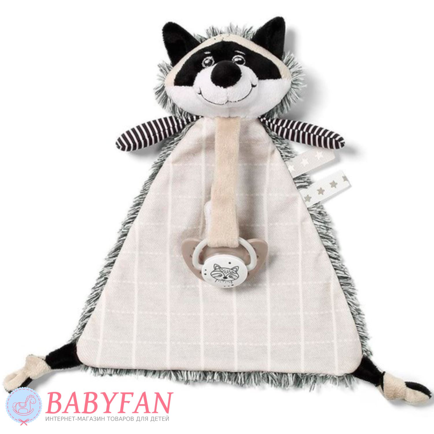Игрушка-обнимашка Енот Роки BabyOno 747 с держателем для пустышки