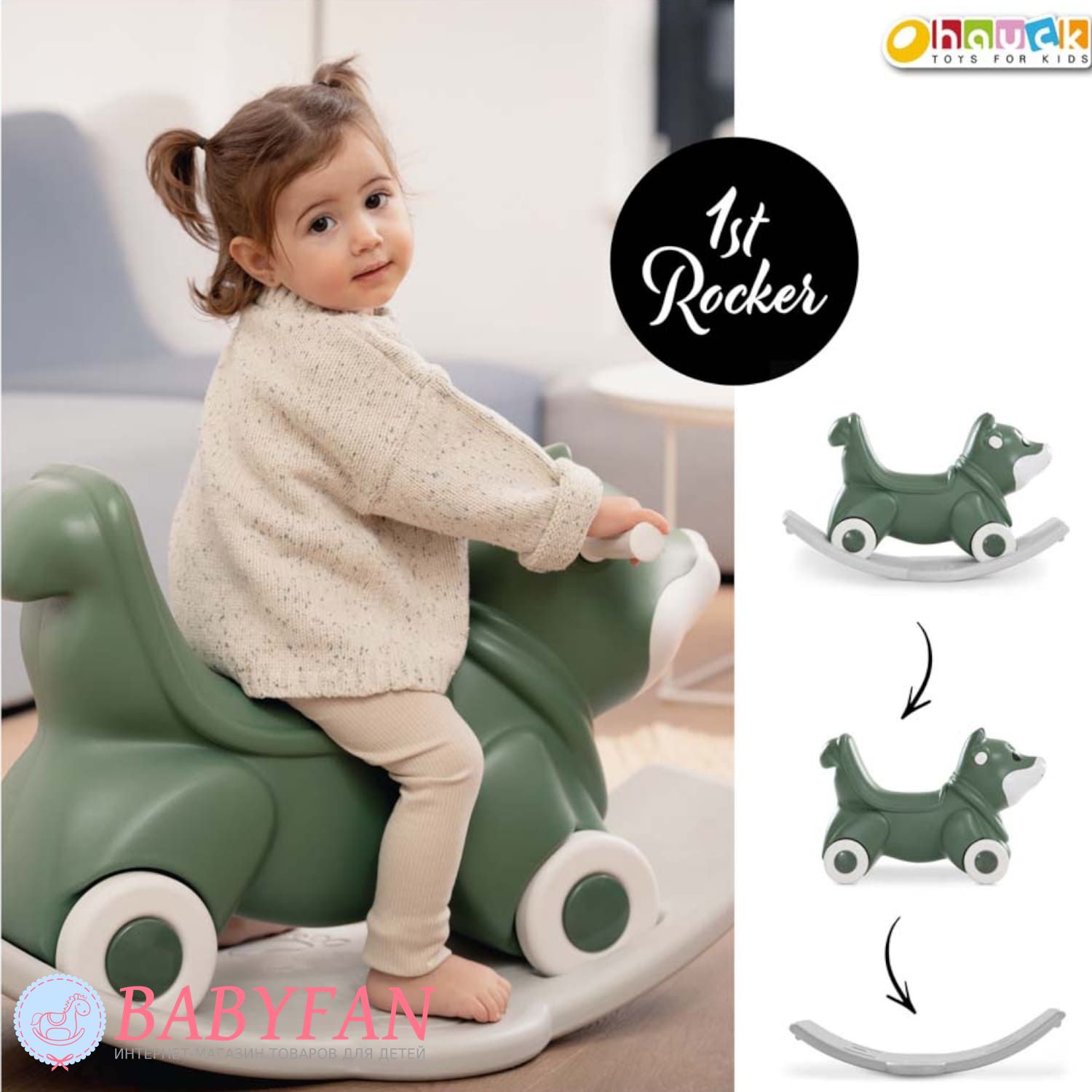 Качели-каталка Hauck 1st Rocker 3 в 1 Fox Green