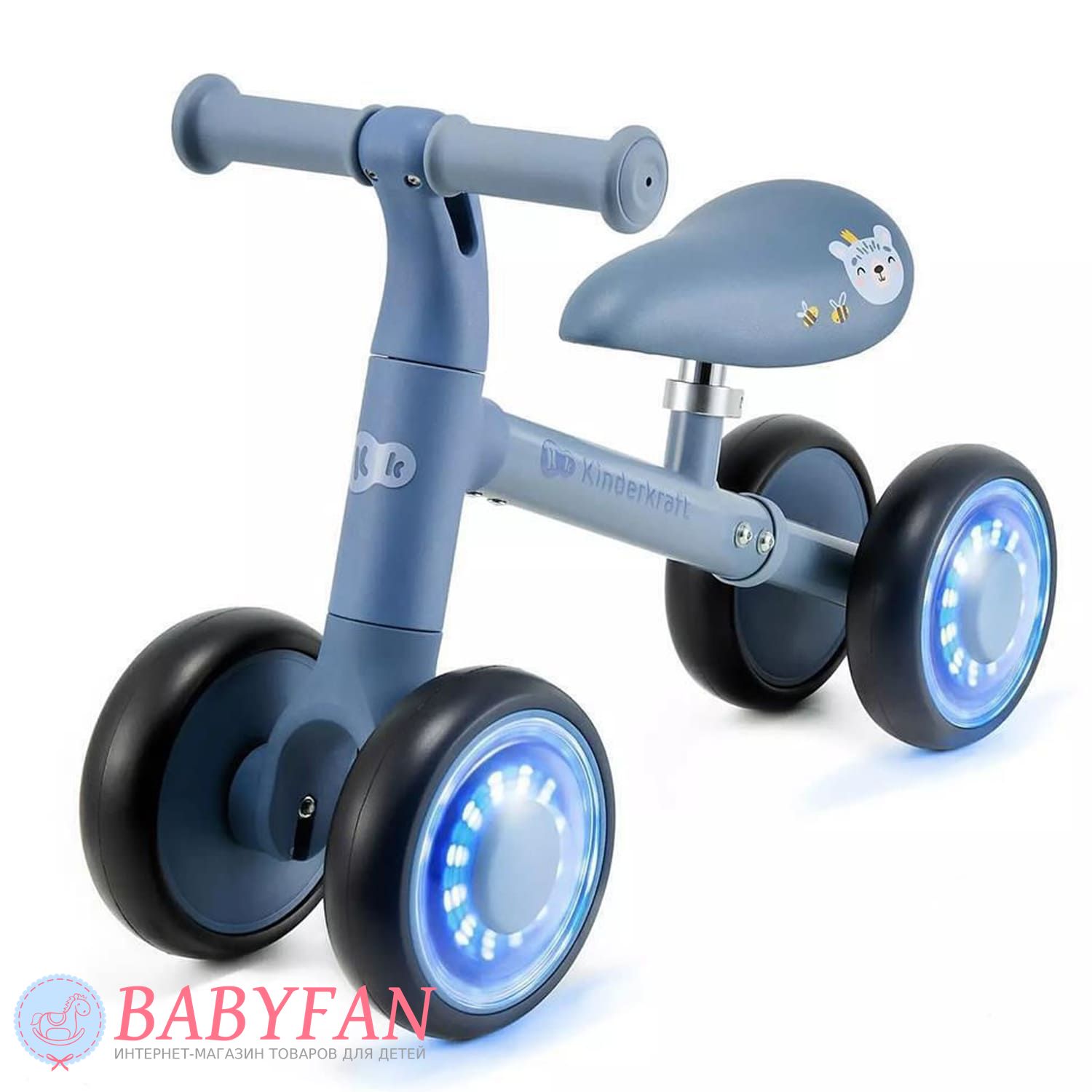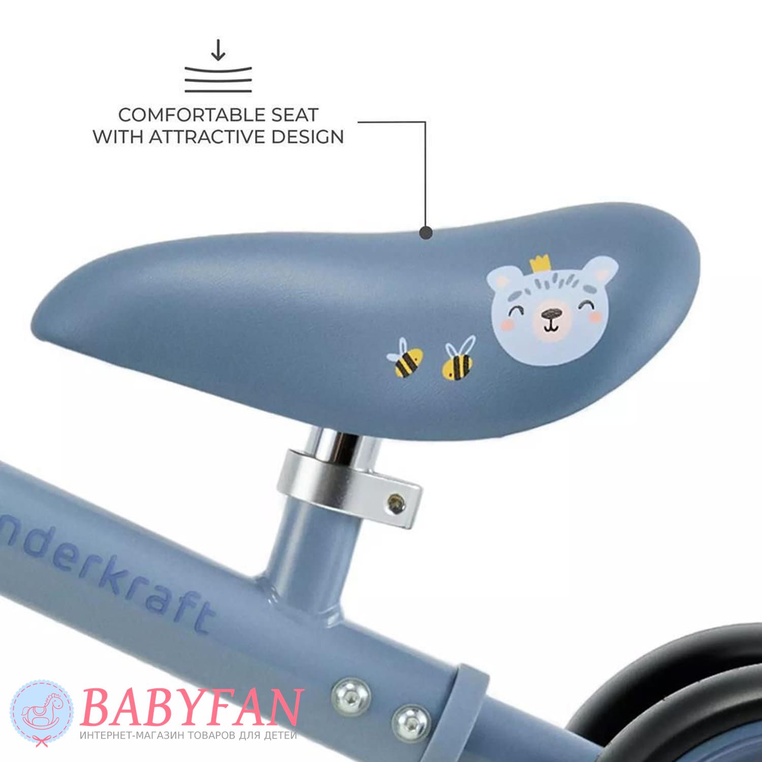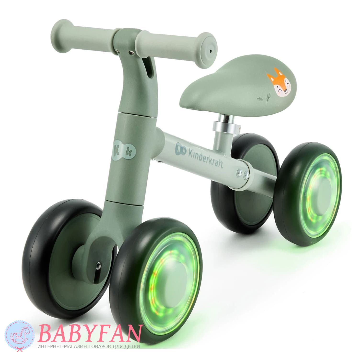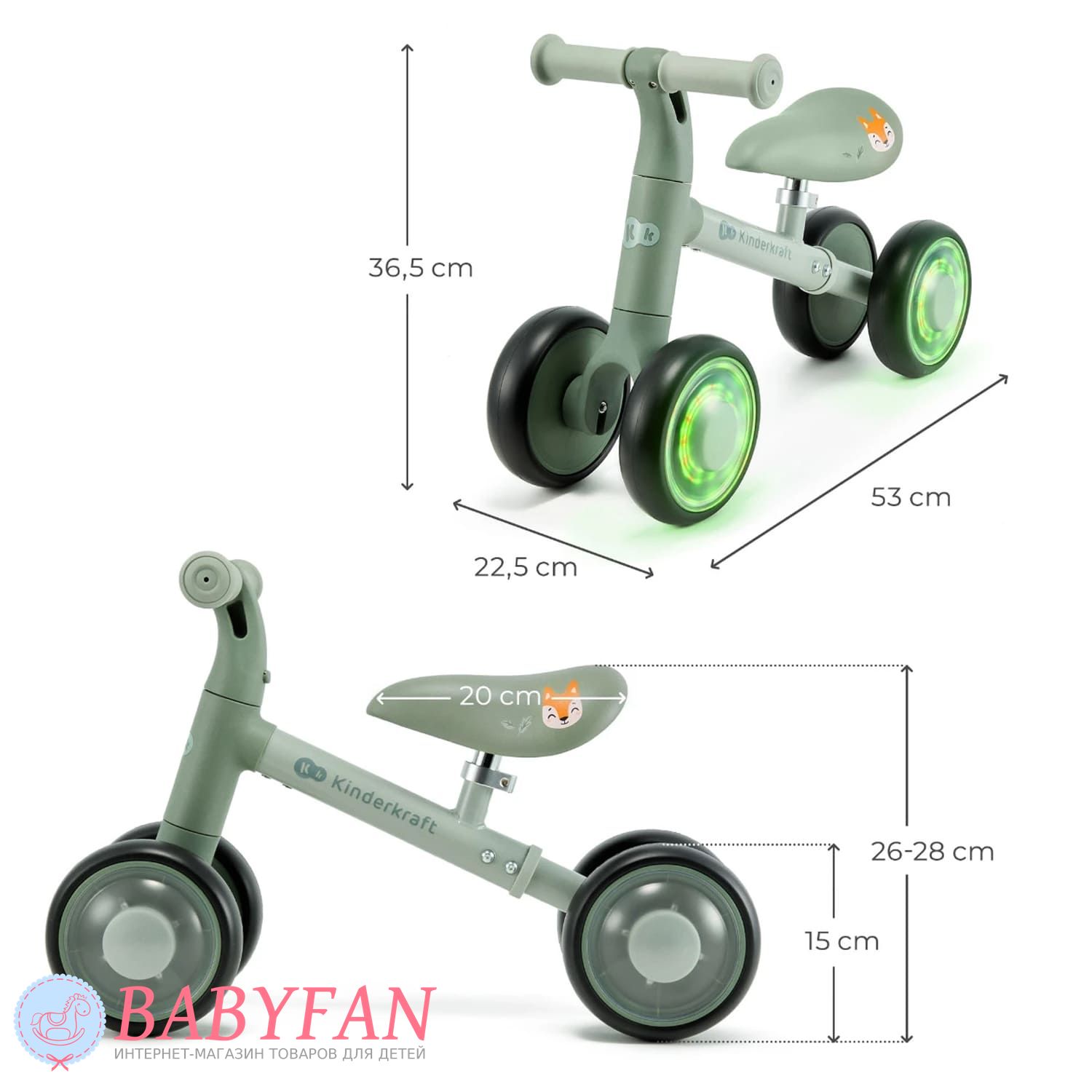 Kinderkraft Cutie – легкий и устойчивый трехколесный каталка-беговел для детей старше 1 года. Выдерживает вес до 25 кг. Изготовлен из прочных и долговечных материалов: металлическая рама, мягкое сиденье и колеса с литыми пластиковыми дисками. Рама покрыта износостойкой порошковой краской. Двухколесная передняя ось обеспечивает беговелу устойчивость к опрокидыванию – ребенку не нужно держать равновесие. Сиденье мягкое и удобное – эргономической формы. Руль оснащен нескользящими грипсами с боковой защитой рук. Руль управляет двумя передними колесами. Беговел приводится в движение отталкиванием ногами.