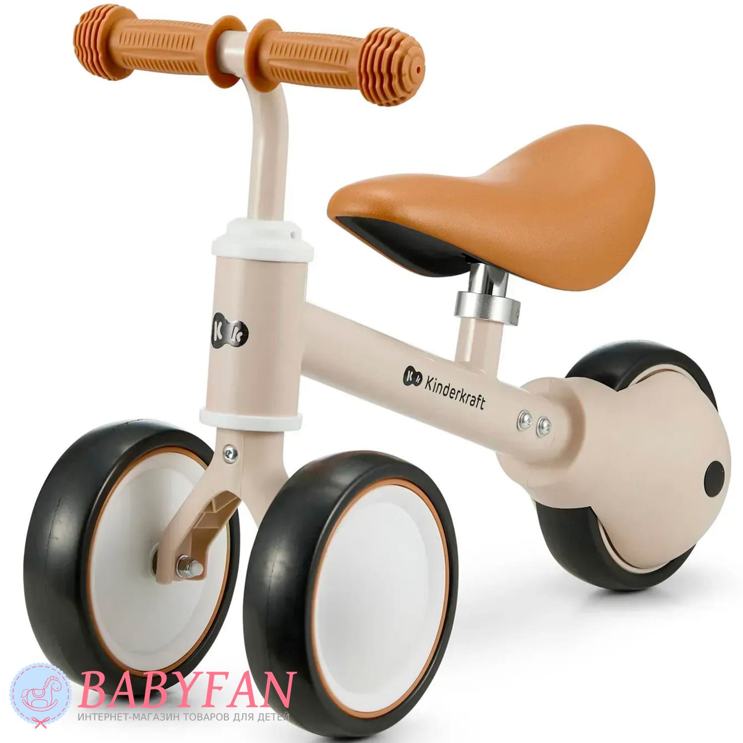Kinderkraft Cutie – легкий и устойчивый трехколесный каталка-беговел для детей старше 1 года. Выдерживает вес до 25 кг. Изготовлен из прочных и долговечных материалов: металлическая рама, мягкое сиденье и колеса с литыми пластиковыми дисками. Рама покрыта износостойкой порошковой краской. Двухколесная передняя ось обеспечивает беговелу устойчивость к опрокидыванию – ребенку не нужно держать равновесие. Сиденье мягкое и удобное – эргономической формы. Изогнутый руль оснащен нескользящими грипсами с боковой защитой рук. Руль управляет двумя передними колесами. Беговел приводится в движение отталкиванием ногами.