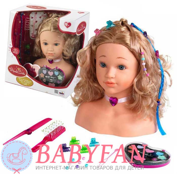 Манекен для причесок Klein 5240 – миловидная кукла с большими глазами и красивым ожерельем в виде сердечка. Ваша дочка сможет научиться плести косички, собирать волосы в пучки и разнообразные хвостики, усвоит правила нанесения косметики. Играя, ребенок сможет развить эстетическое восприятие, любовь к опрятности и аккуратному внешнему виду. Игра поможет обогатить знания об окружающем мире, развить фантазию, воображение. Ваша малышка с подружками смогут устроить настоящий салон красоты.