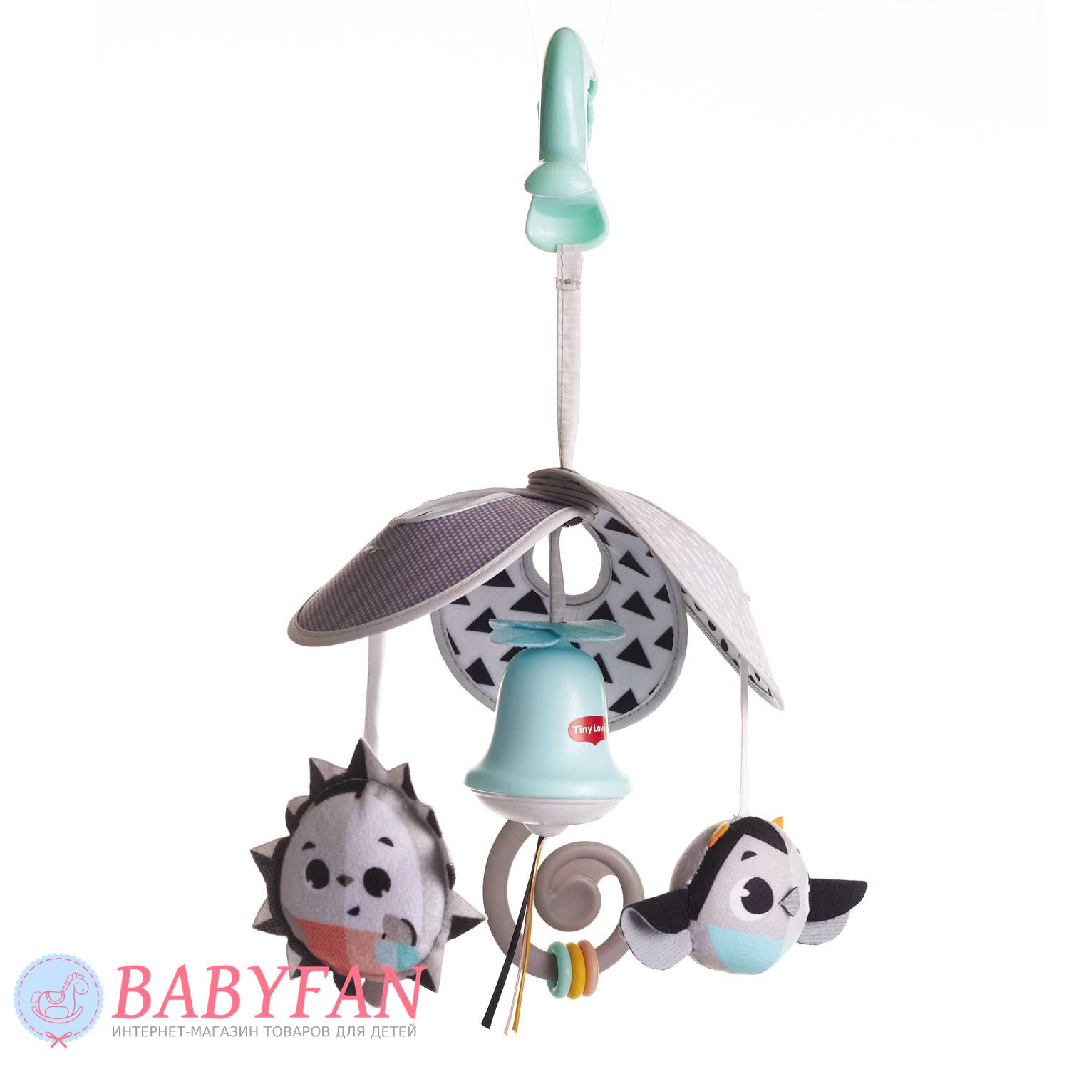 Мини мобайл на прищепке Tiny Love Pack&Go – складная карусель, с приятными на ощупь материалами, яркой расцветки и красивым звучанием колокольчиков. Благодаря зажиму, можно крепить на капюшон любой коляски или на ручку автокресла группы 0+.