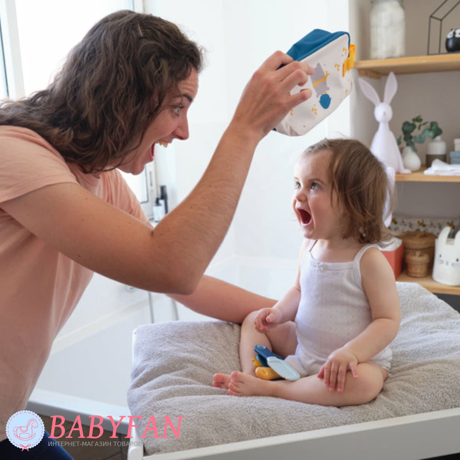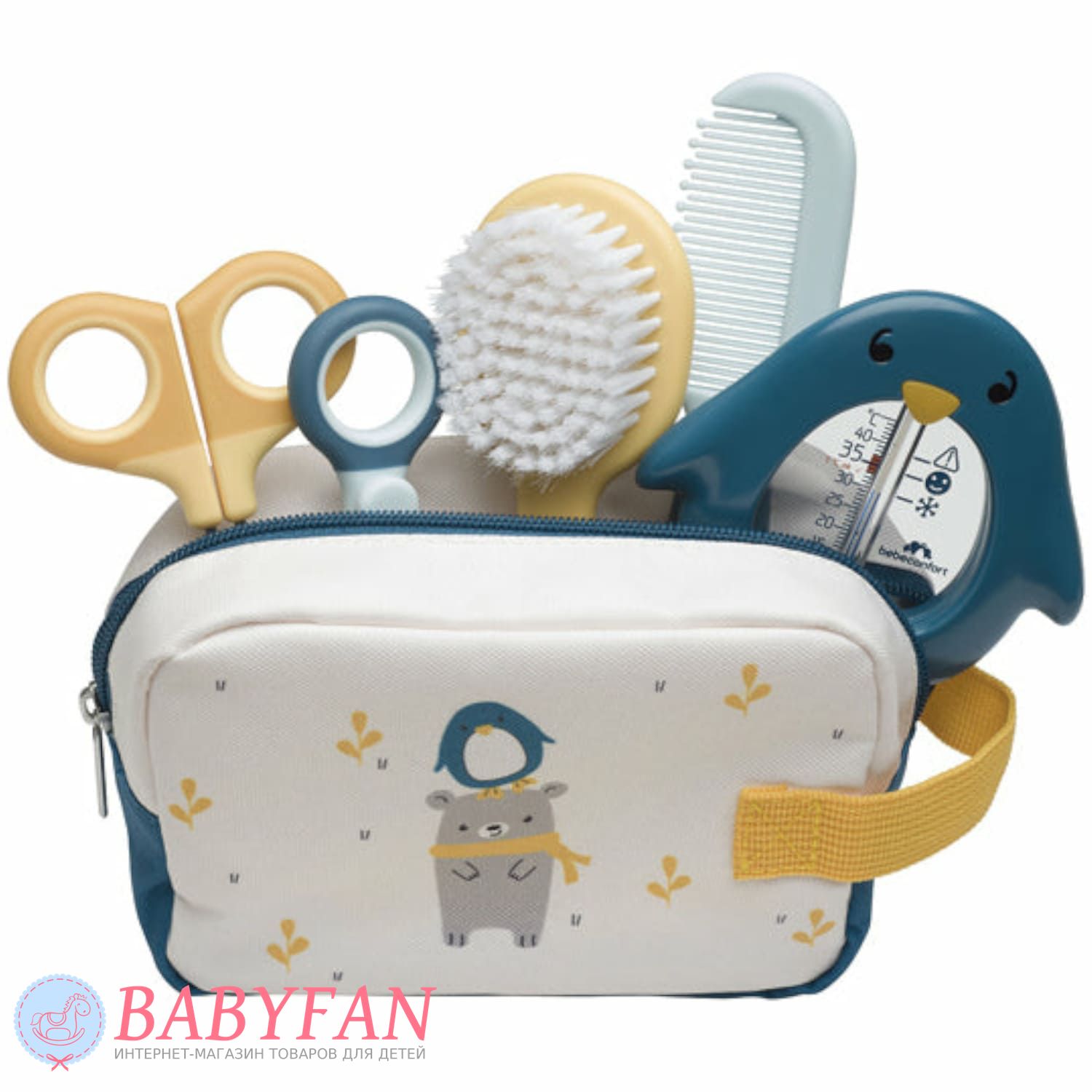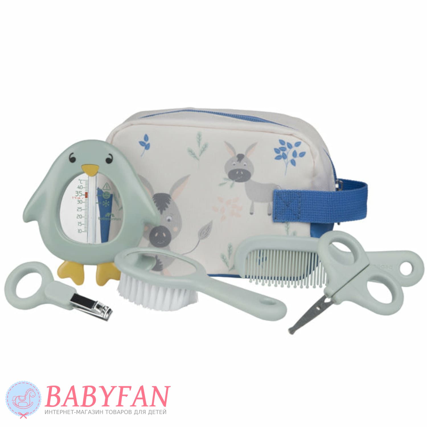 - в комплект входят все необходимые инструменты для ухода за малышом, такие как щипчики для ногтей, термометр, расческа и щетка для волос, а также аспиратор для носа;