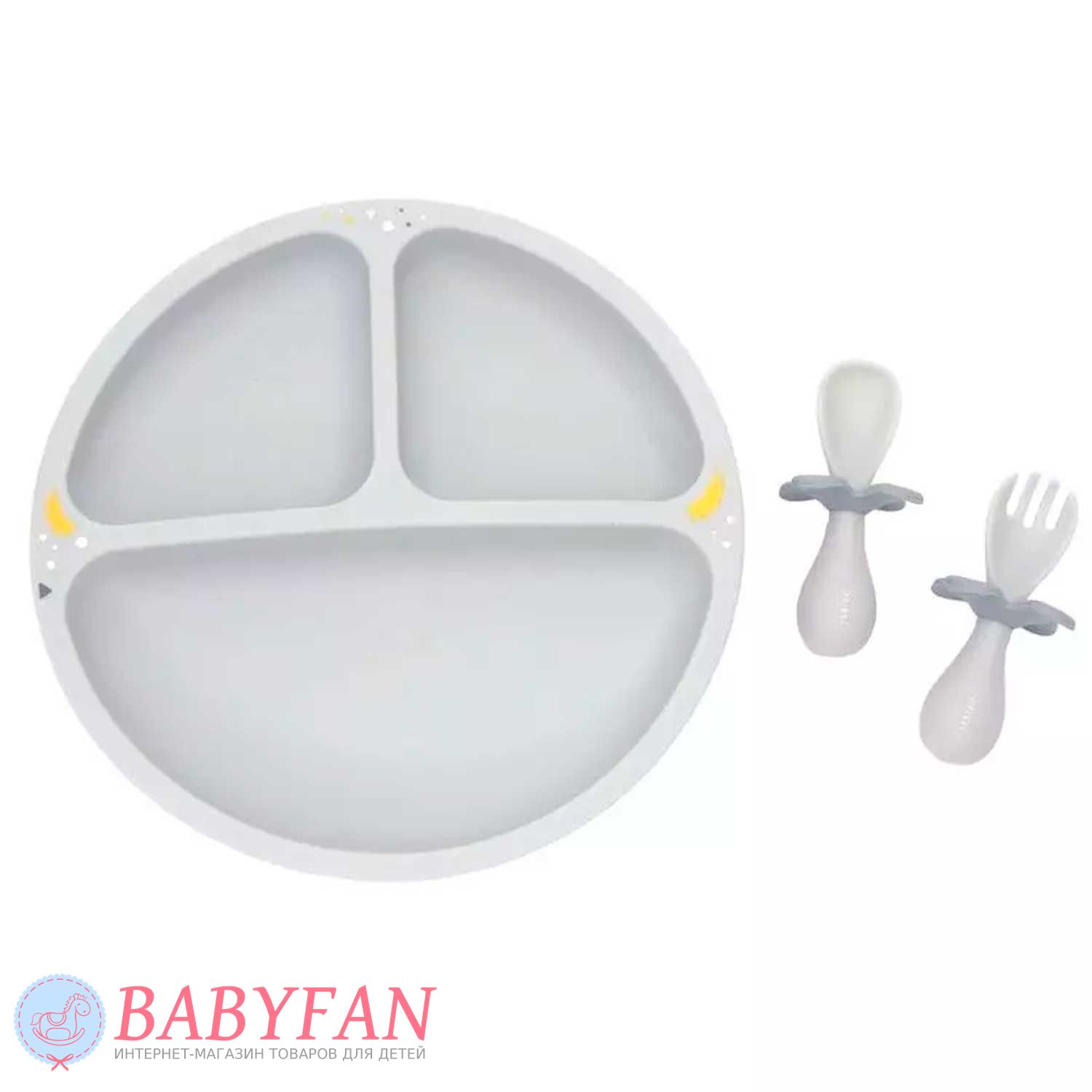 Набор посуды Oribel Cocoon из 3 предметов – ложки, вилки и порционной тарелки – сделает прием пищи безопасным и удобным для ребенка и мамы. Предназначен для детей от 4 месяцев. Полностью безопасен для ребенка – изготовлен из пищевого силикона, который не содержит бисфенола А (BPA), поливинилхлорида (PVC) и фталатов. Закругленные края, мягкий и нежный материал исключают порезы и повреждения чувствительных десен. На дне тарелки предусмотрена присоска, надежно фиксирующая ее на любой поверхности – не опрокинется. В тарелке предусмотрены 3 углубления для разного вида пищи. Посуда легко моется под проточной водой или в посудомоечной машине.