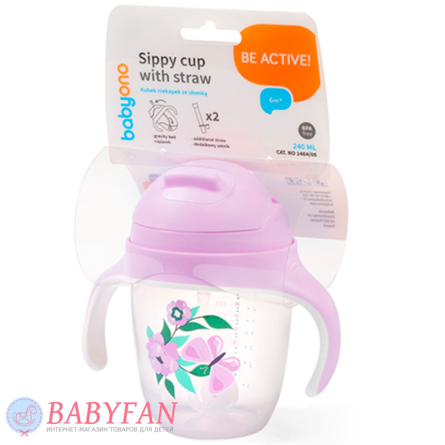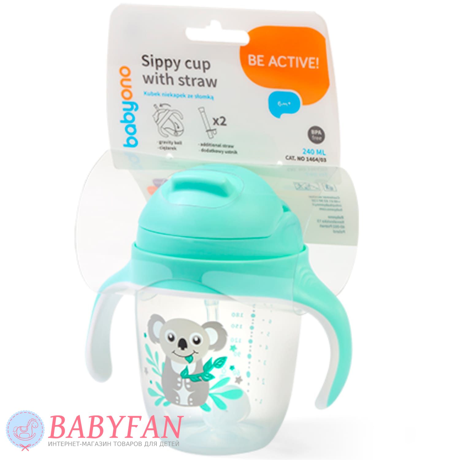 Поильник-непроливайка BabyOno с соломкой, 240 мл