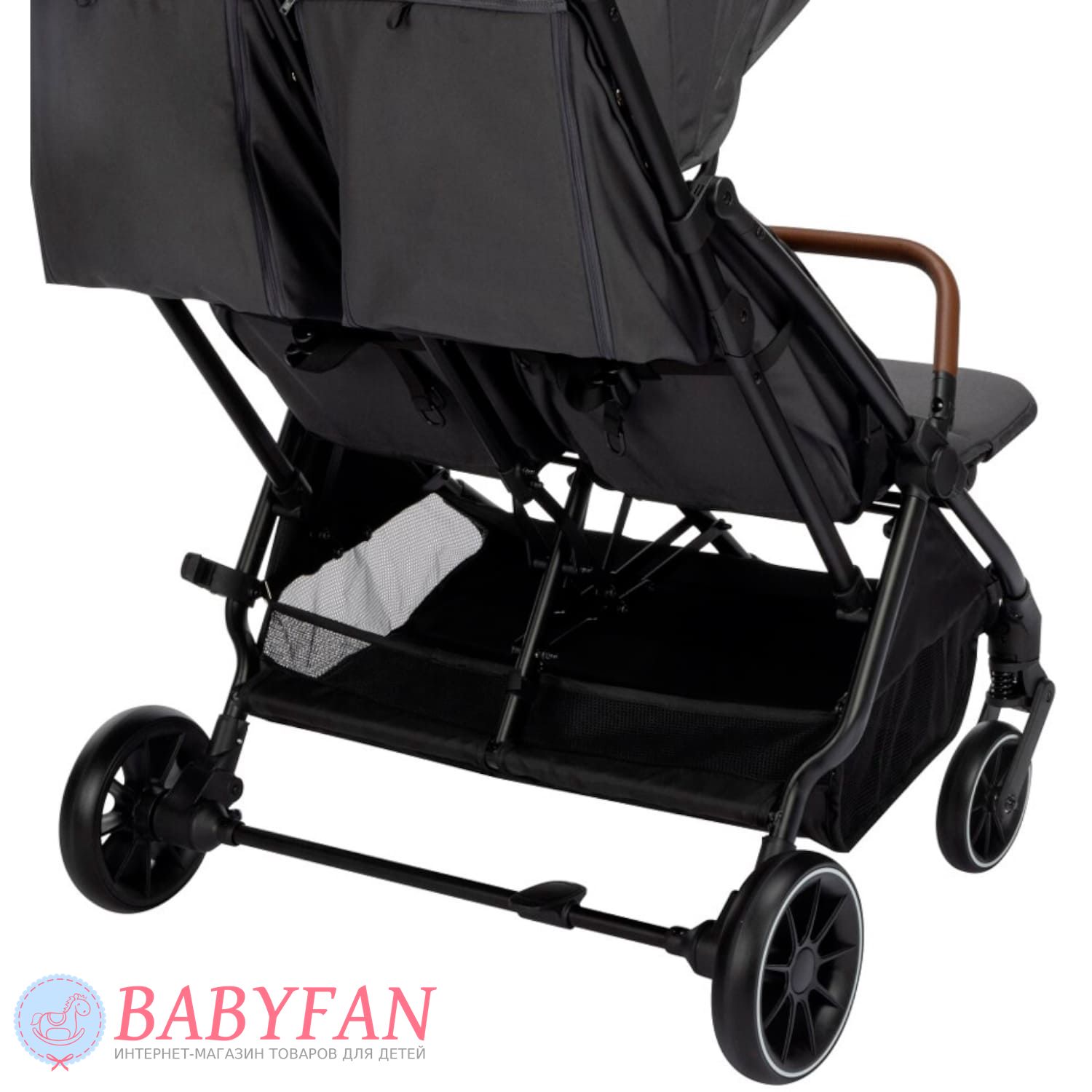 Несмотря на формат для двойни, Mane остается компактной и легко управляемой. Поворотные передние колёса обеспечивают отличную манёвренность, а лёгкая рама делает коляску удобной в повседневном использовании — как на прогулках, так и в поездках. Для комфорта предусмотрены большие капюшоны, которые защищают малышей от солнца и ветра. Пятиточечные ремни безопасности надёжно фиксируют детей, а мягкие сиденья создают уют даже во время длительных прогулок. Коляска легко складывается и не занимает много места при хранении, что особенно важно для родителей с двумя детьми.