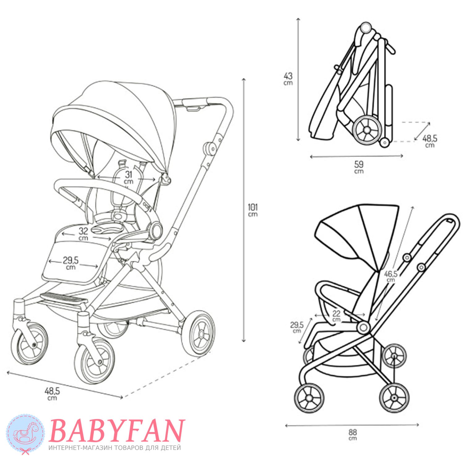 Размеры в сложенном виде:59х48,5х43 см