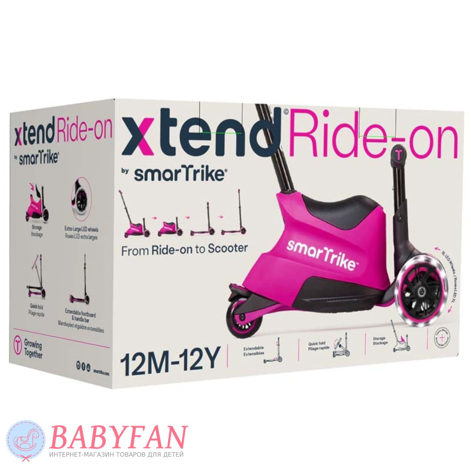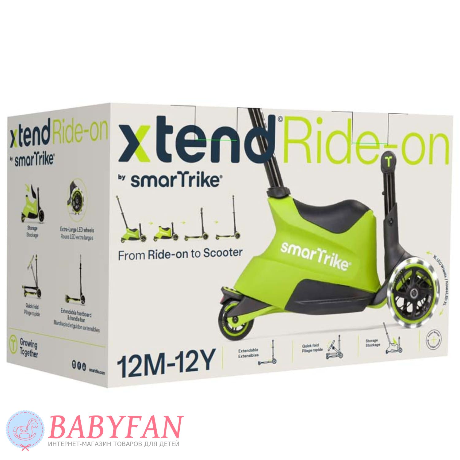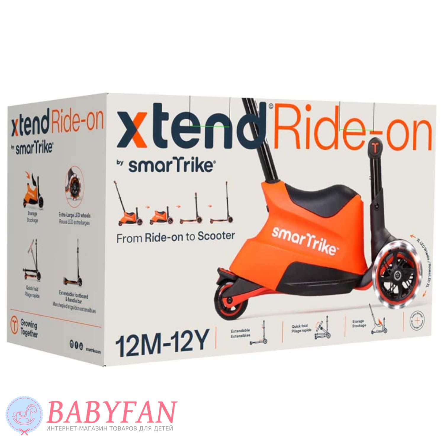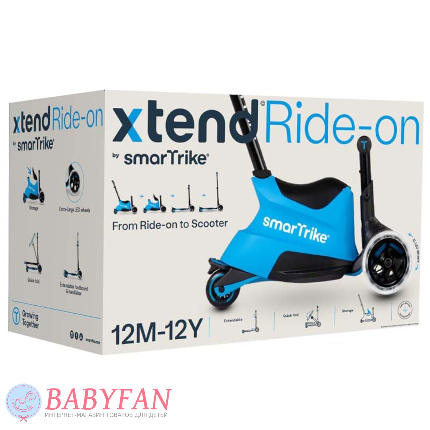 Самокат smarTrike Xtend Ride-On – многофункциональное транспортное средство для детей от 12 месяцев до 12 лет. Этот продуманный самокат станет отличным приобретением для каждой семьи, подарив ребенку радость движения и свободу передвижения. Благодаря своей способности трансформироваться в зависимости от возраста ребенка, smarTrike Xtend Ride-On прослужит долго, удовлетворяя потребности вашего малыша в разные периоды его роста. Это экономит деньги на покупку новых транспортных средств каждые несколько лет, поскольку Xtend Ride-On подстраивается под рост и умения ребенка.