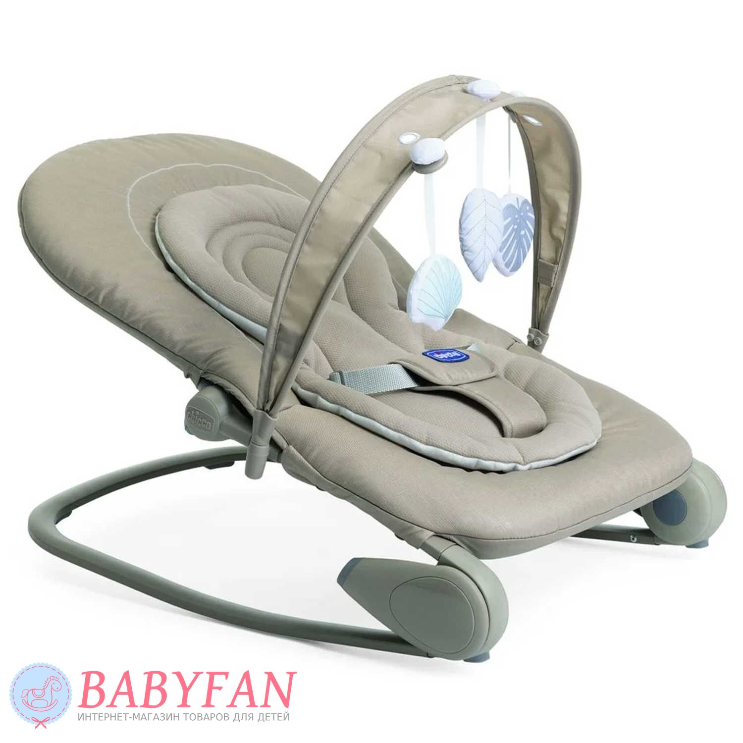 Кресло–качалка шезлонг Chicco Hoopla – это безопасное сиденье для новорожденных. В нем ребенок чувствует себя также хорошо и спокойно, как на маминых руках. Многопозиционная спинка шезлонга, вкладыш для самых маленьких, дуга с игрушками, которые легко можно переставлять, функция качания – все, что нужно для создания комфортных условий во время отдыха или бодрствования ребенка, пока мама занята делами.