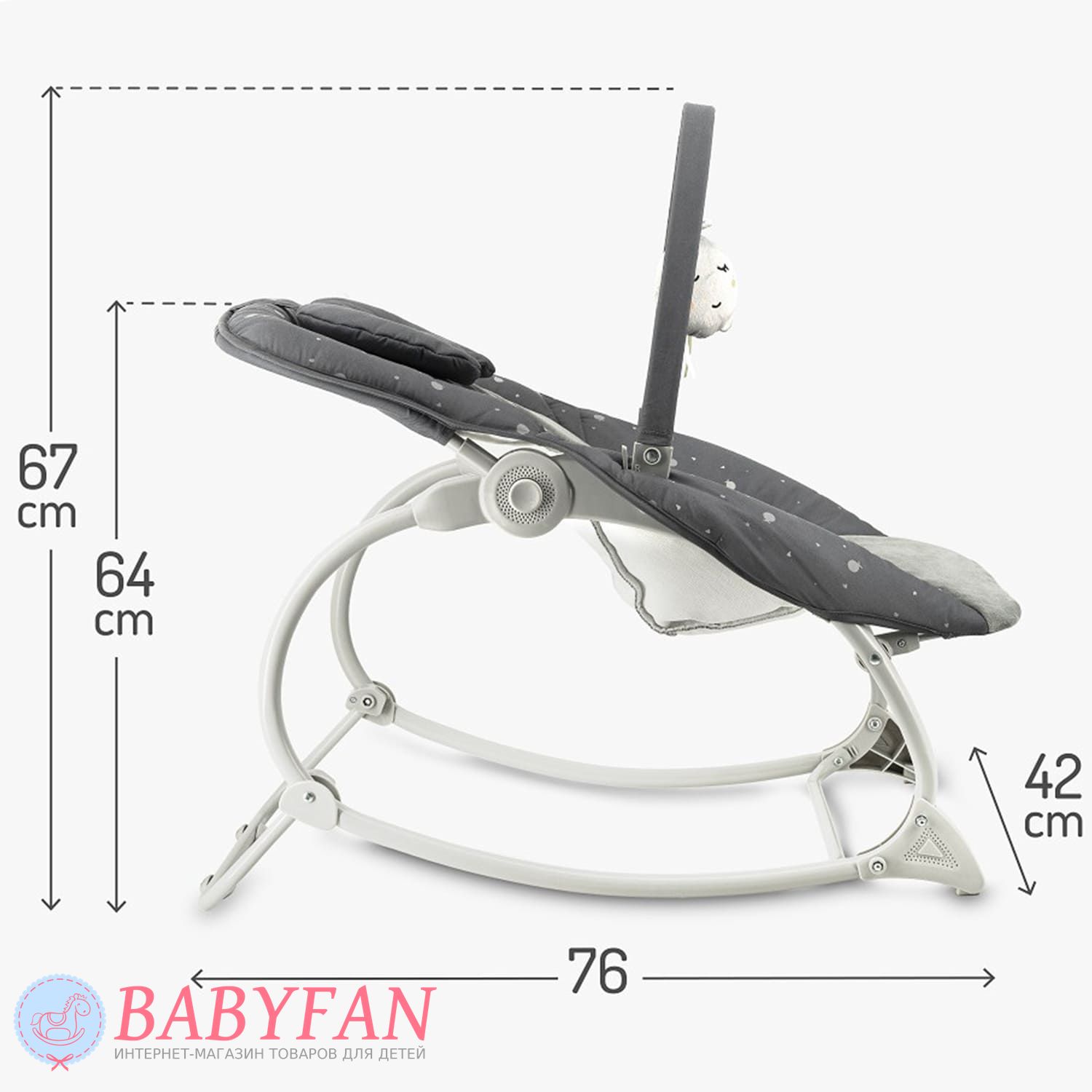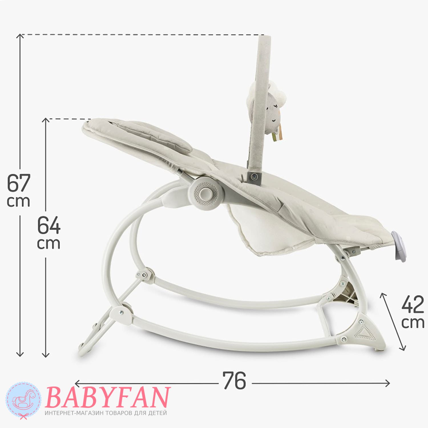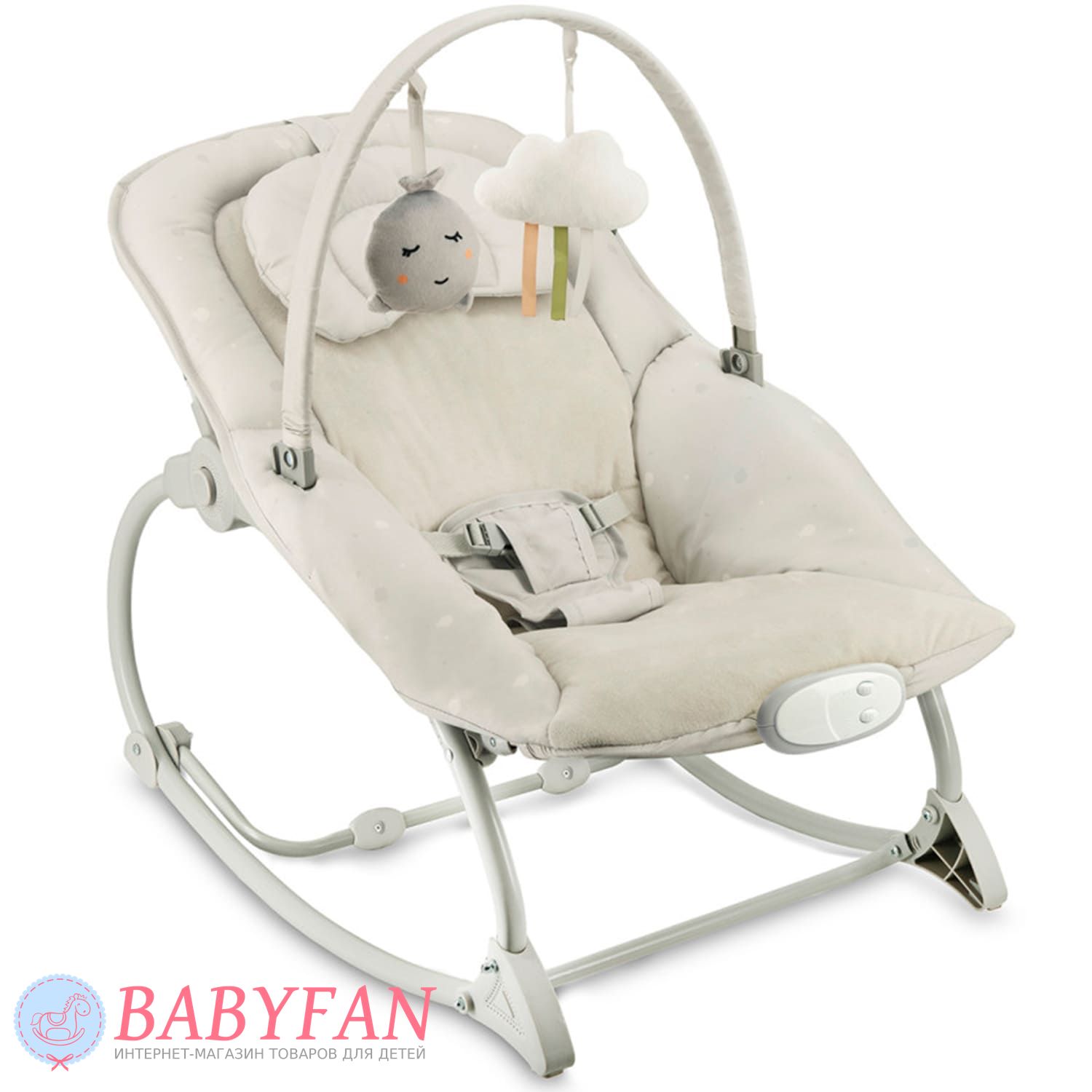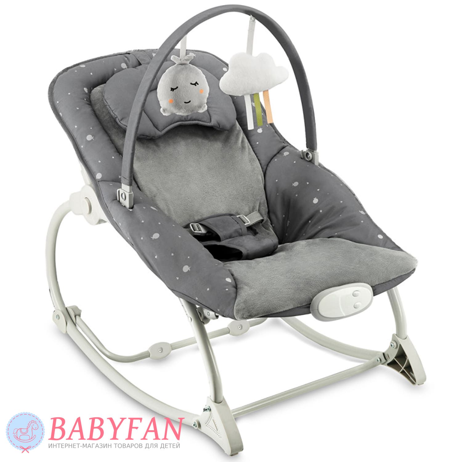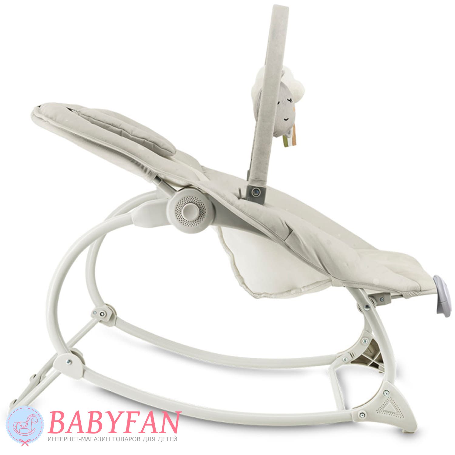Легкое естественное покачивание успокаивает малыша и помогает ему расслабиться. Шезлонг реагирует на движения ребенка, мягко укачивая его без батареек и сложных механизмов. Это делает использование безопасным и максимально естественным. Модель оснащена удобной дугой с игрушками, которые привлекают внимание малыша, развивают зрительное восприятие и моторику. Ребенок может играть, тянуться к игрушкам и познавать мир, оставаясь в комфортном и безопасном положении.