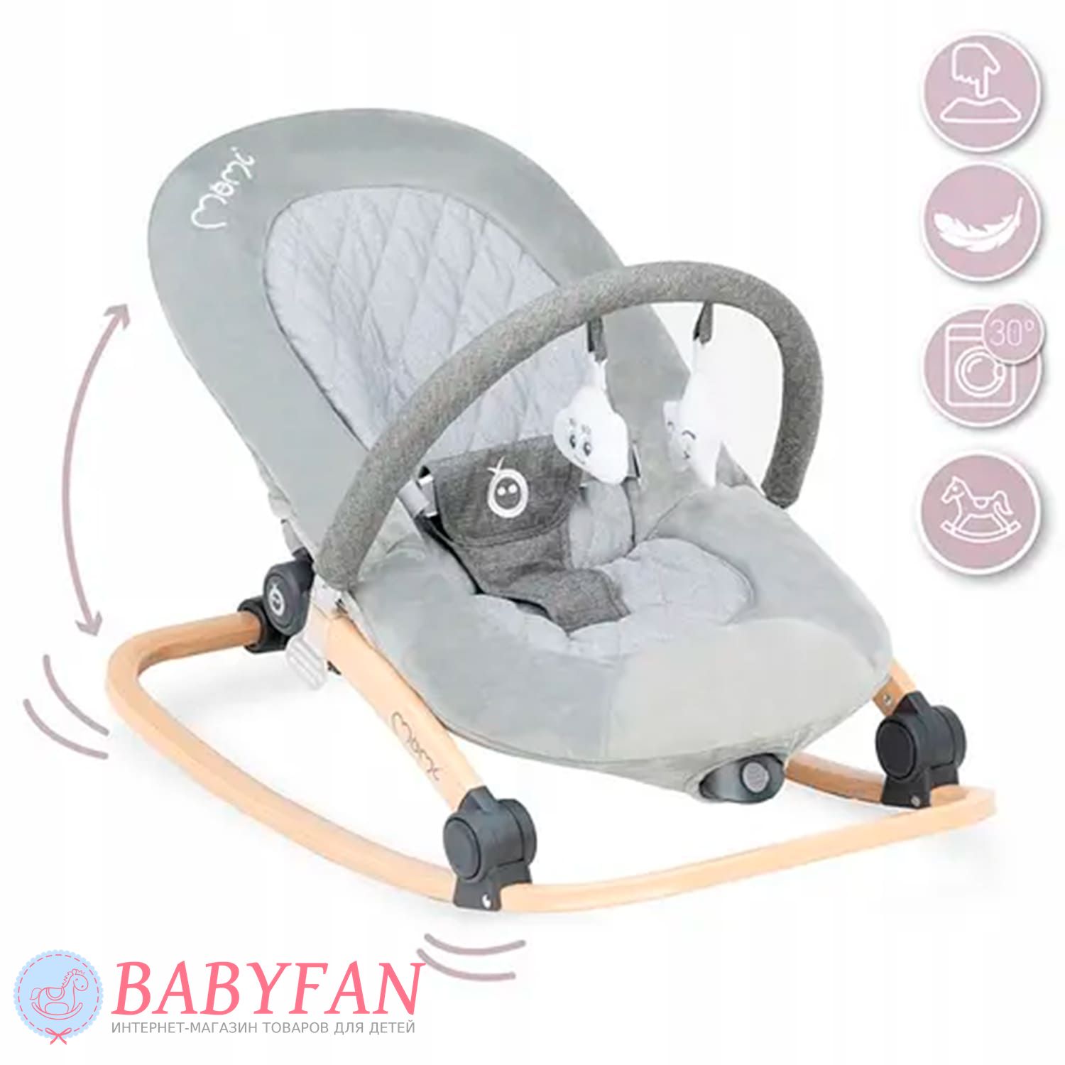 Шезлонг MoMi Lumiwood сочетает в себе современный дизайн, натуральные элементы и максимальный комфорт для малыша с первых месяцев жизни. Благодаря элегантной деревянной основе он выглядит стильно и легко вписывается в любой интерьер, создавая уютное пространство для отдыха ребенка.
