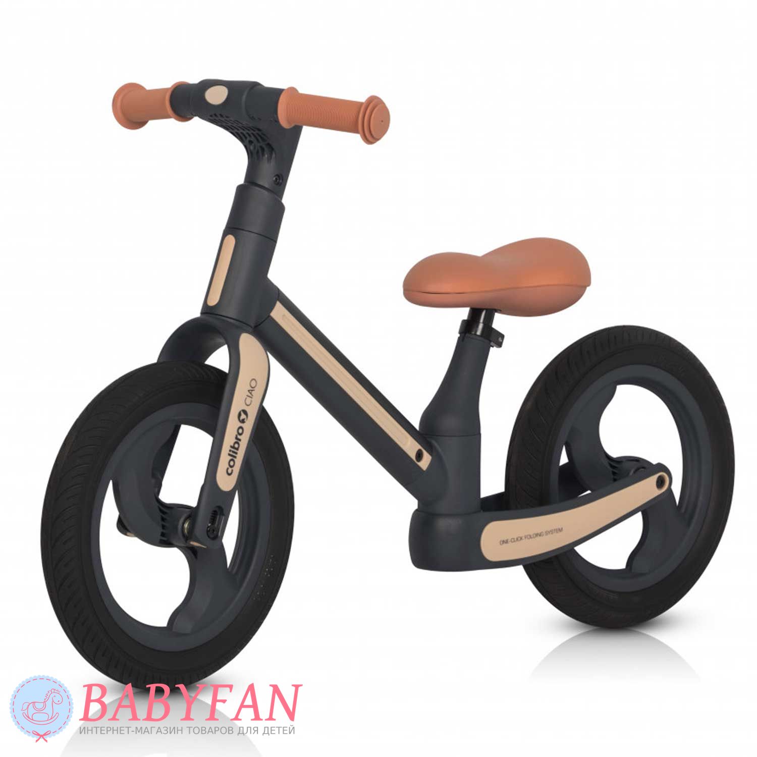 Colibro Ciao – это двухколесный складной беговел для детей от 2 до 5 лет. Выполнен в виде классического велосипеда без педалей. Изготовлен из прочных, долговечных и качественных материалов: рама из армированного матового пластика, покрышки колес из эластичной резины, грипсы из термопластичной резины и сиденье наполненное пеной. Одним нажатием кнопки складывается пополам и в таком состоянии помещается в рюкзак. Полностью безопасен для ребенка – изготовлен из нетоксичных и безопасных материалов, не имеет острых углов и граней о которые ребенок может пораниться. Соответствует европейскому стандарту безопасности EN 71-1-2-3.