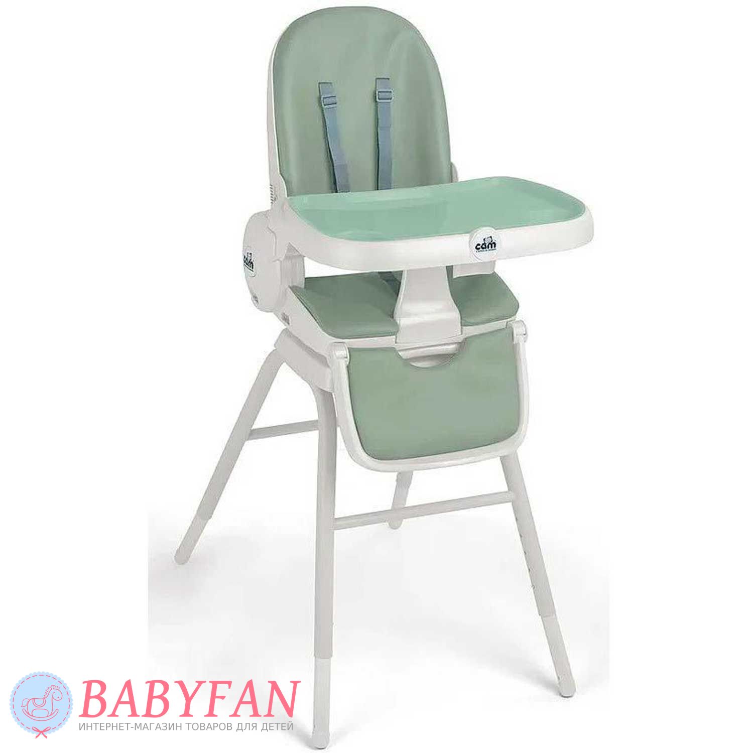 Cam Original – итальянский стульчик для кормления трансформер для детей от рождения до 14 лет. По мере роста ребенка превращается в шезлонг для новорожденных младенцев, поворотный стульчик для кормления, компактный переносной бустер и стул с высокой спинкой. Изготовлен из качественных, прочных и долговечных материалов: металлическая рама, сиденье из матового пластика, чехол из экокожи и вкладыш для новорожденных из натуральной ткани. Соответствует европейским стандартам безопасности, полностью нетоксичен (EN 71) и не содержит фталатов. Протестирован на переднюю, заднюю и боковую устойчивость для предотвращения опрокидывание ребенка.