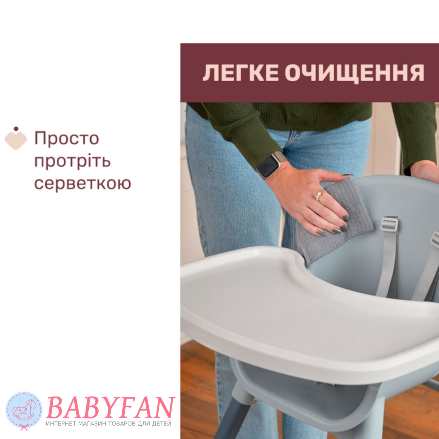 Chicco Polly Zest прост в уходе, что является важным преимуществом для родителей. Экологичные материалы легко очищаются от пищи и других загрязнений. Стильный и практичный дизайн делает его универсальным выбором, подходящим как для дома, так и для выездов.
