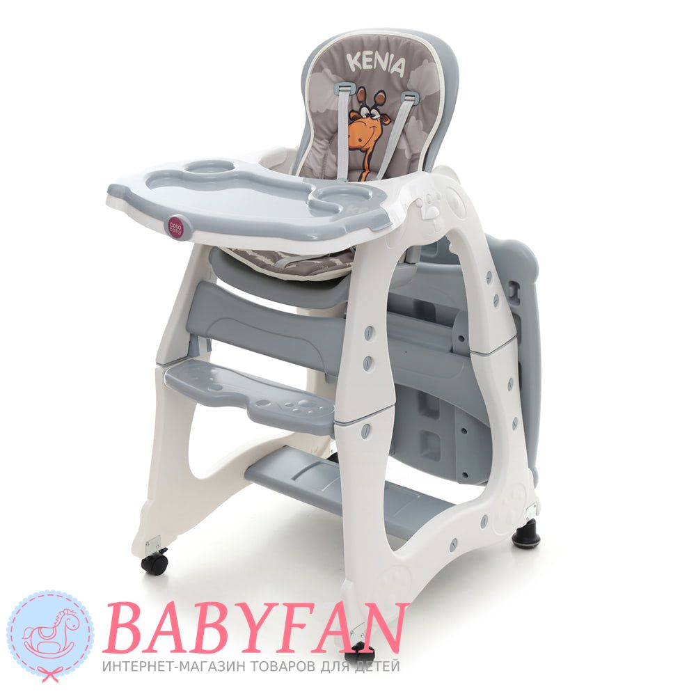 Стульчик для кормления Coto Baby Kenia – практичный стульчик трансформер, используемый в качестве безопасного стульчика для кормления и как комфортный высокий стул со столом для игр, занятий или самостоятельного приема пищи. Для обеспечения комфортных условий предусмотрена регулировка наклона спинки сиденья и индивидуально настраиваемый двойной лоток.