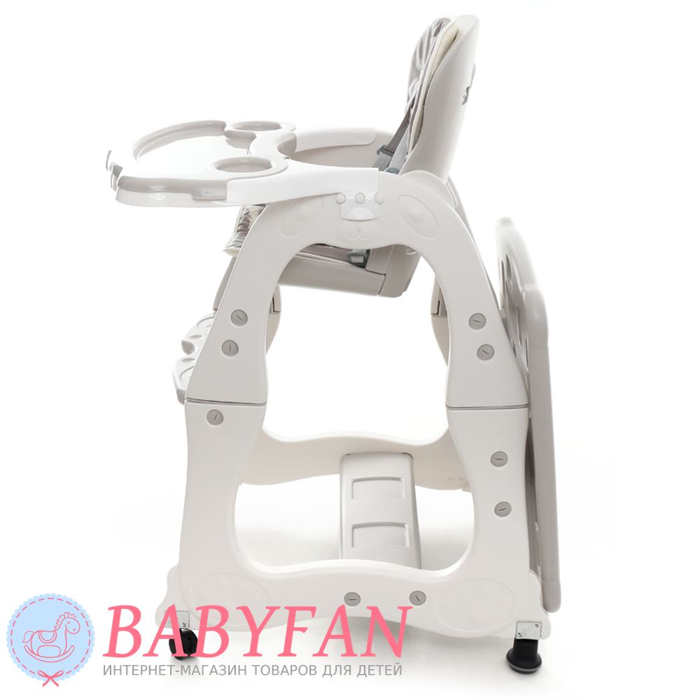 - двойная столешница с возможностью регулирования расстояния от ребенка используется для приема пищи, игр или занятий (стульчик можно использовать, не раскладывая столешницы);