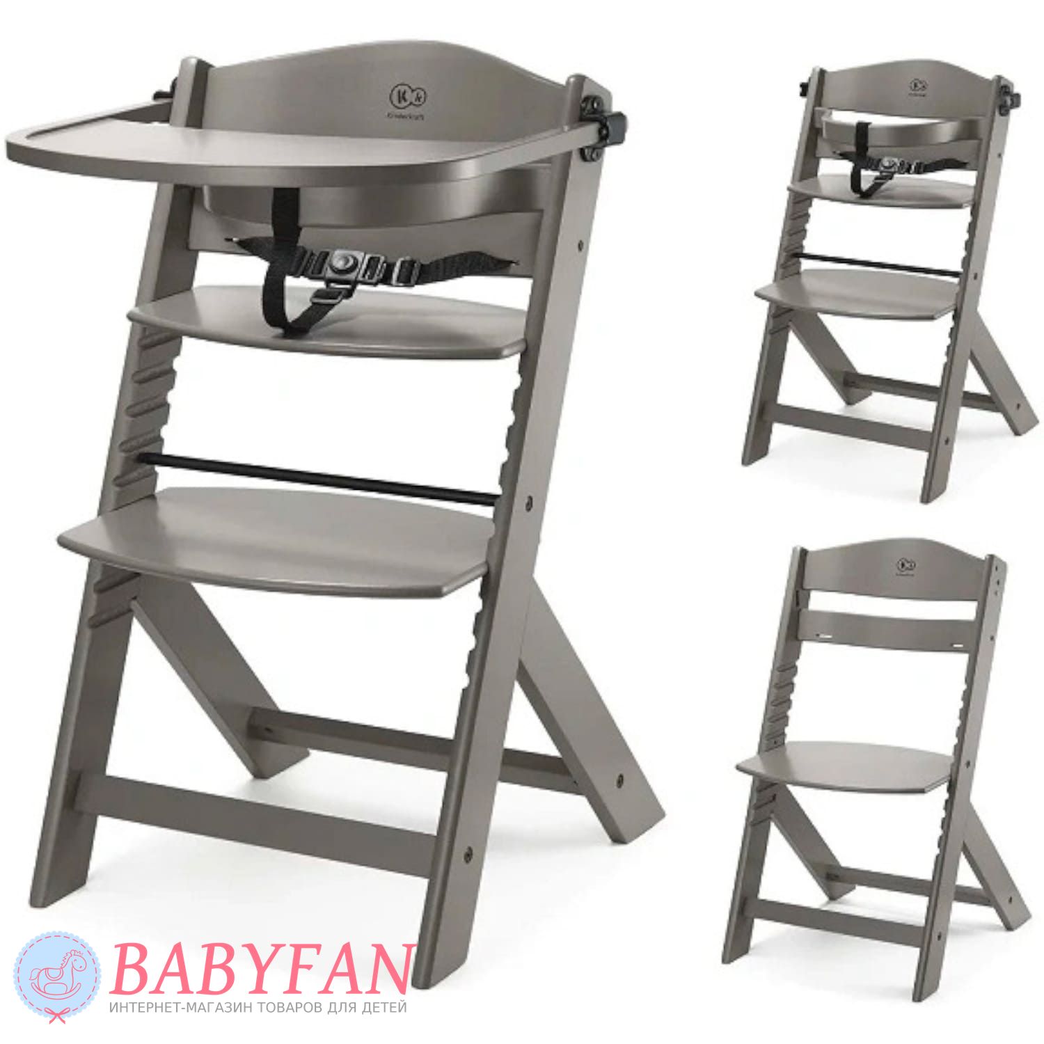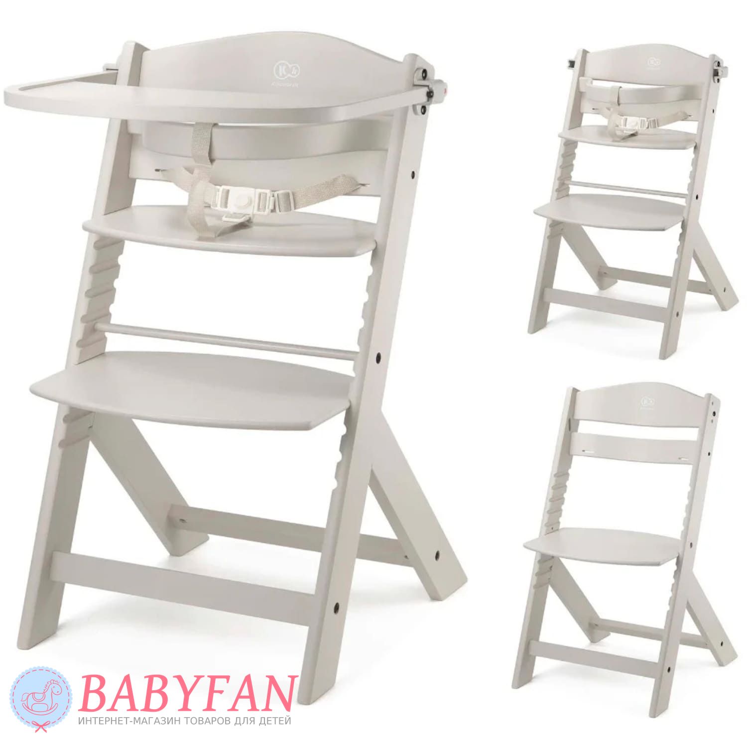 Kinderkraft Enock – стульчик для кормления для детей от 6 месяцев до 10 лет в скандинавском минималистическом стиле со съемным столиком и регулировками высоты сиденья и подножки. Изготовлен из отполированной древесно-стружечной плиты окрашенной безопасными для детей краской и лаком – полностью нетоксичный. Универсальный – благодаря регулировкам сиденья и подножки подходит к любому столу и впишется в любой интерьер. За безопасность ребенка отвечают 3-точечные ремни безопасности, защитный бампер и гибкий ограничитель между ног. По мере роста ребенка столик снимается, опускается сиденье и подножка.