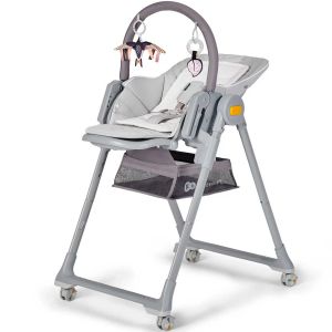 - модель 2 в 1: шезлонг с развивающей дугой и мягкими игрушками для новорожденных и высокий стульчик для кормления для детей старше 6 месяцев;