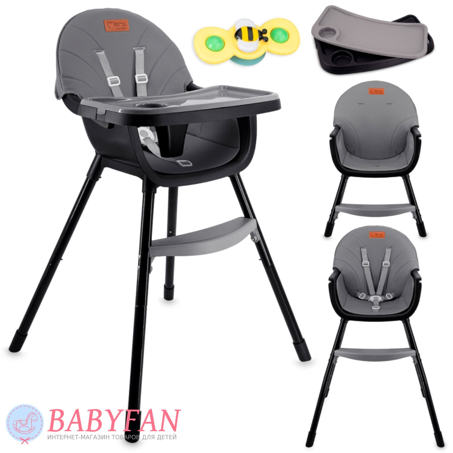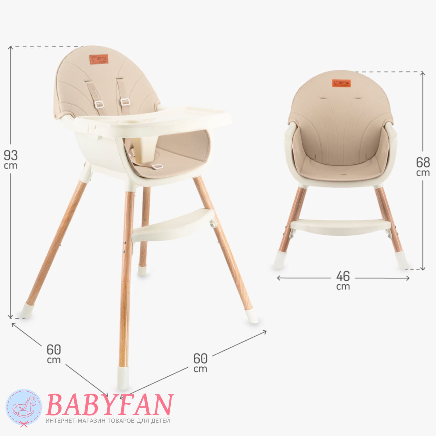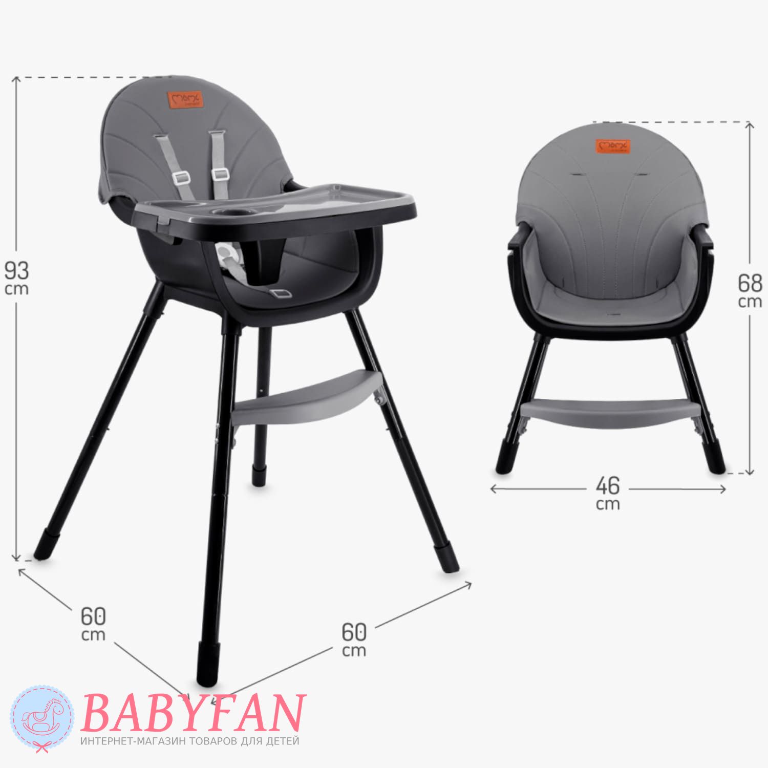 - формат 2в1: высокий и низкий стульчик;