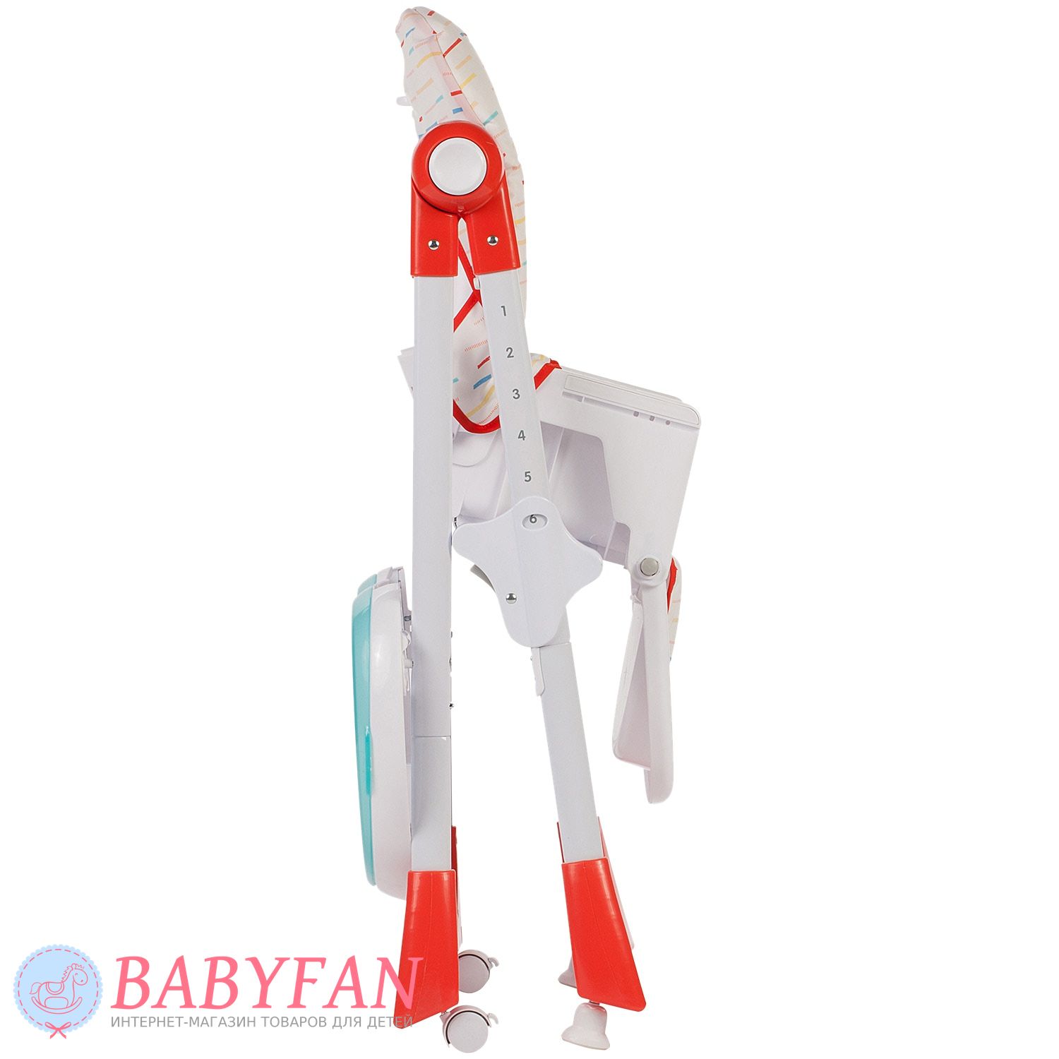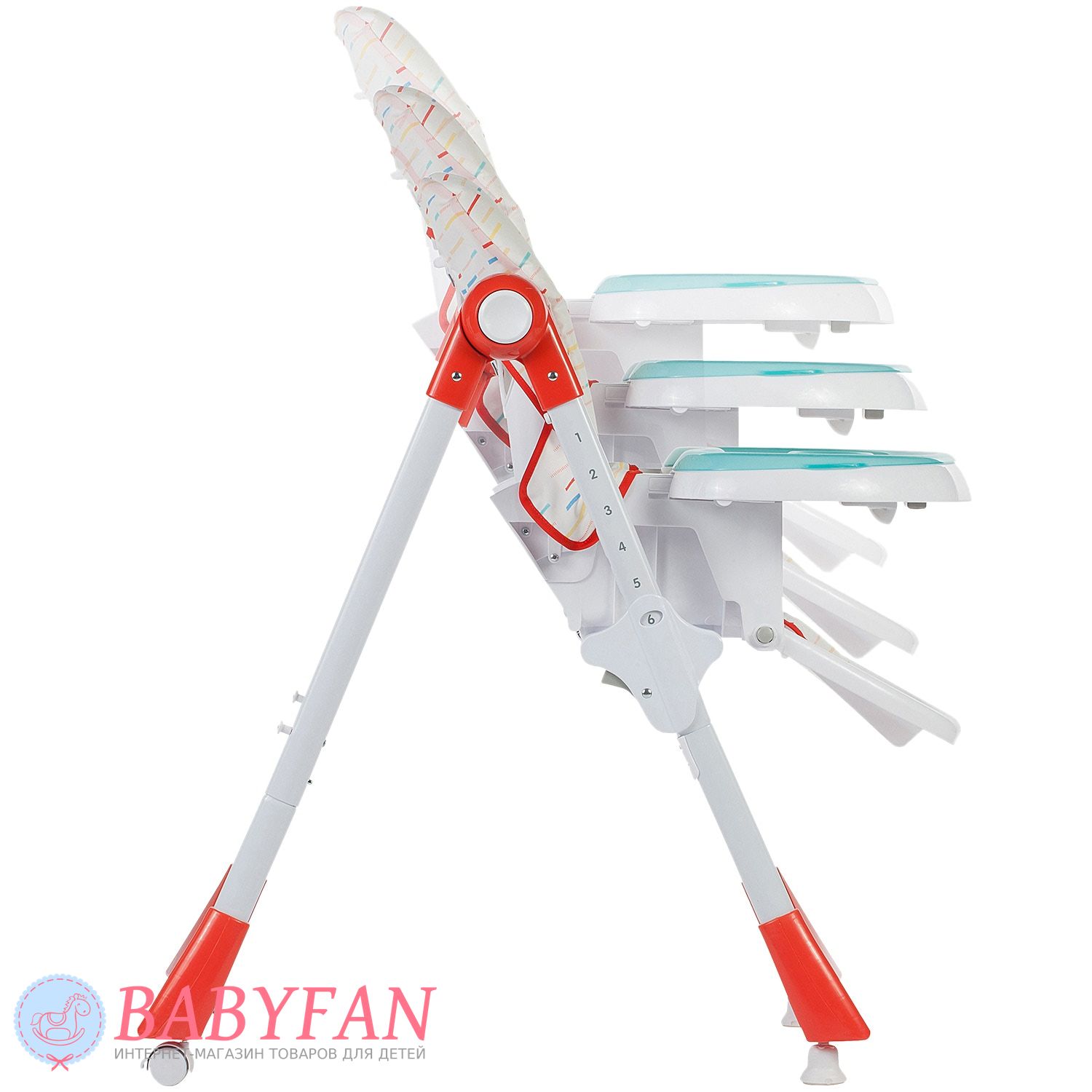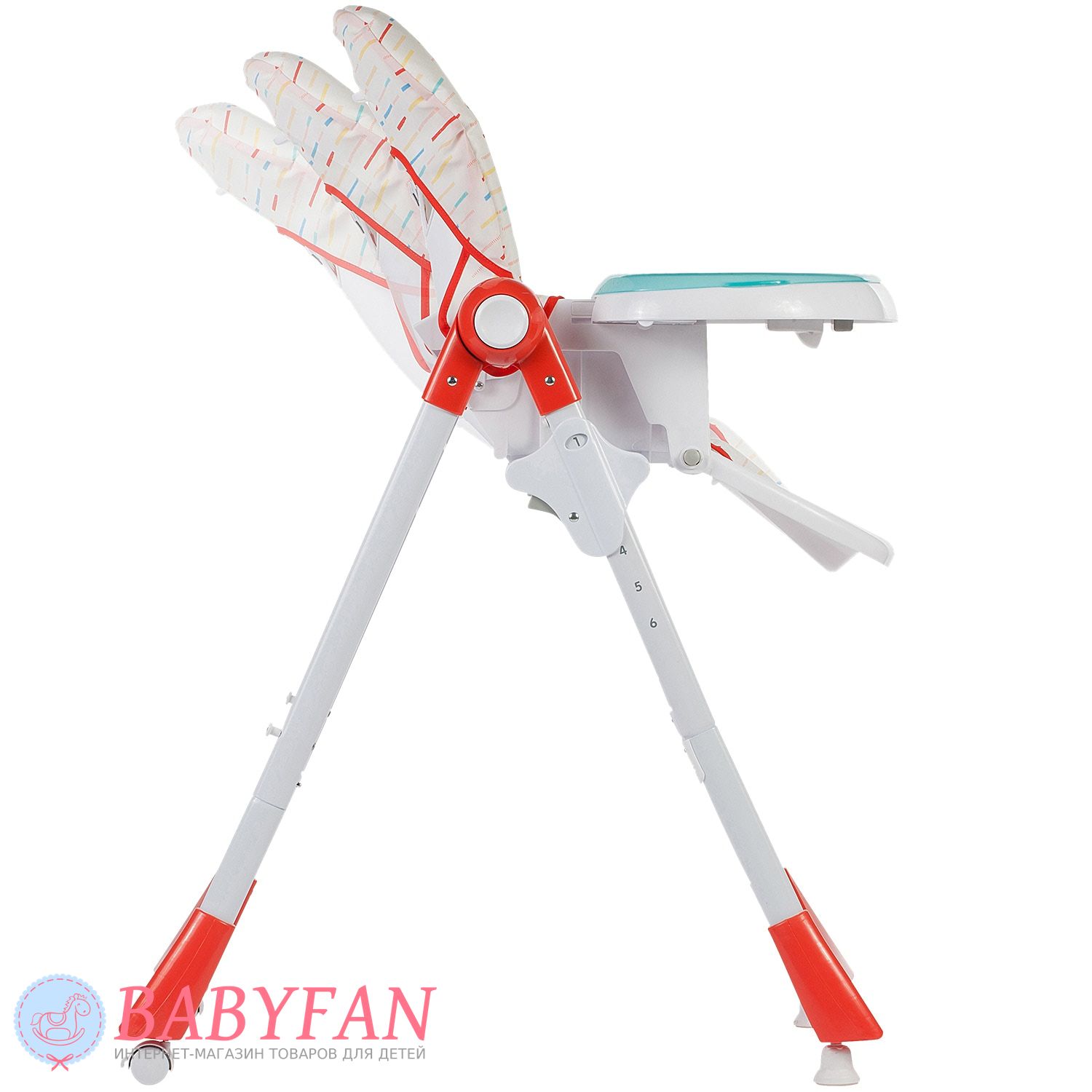 - высота стульчика легко меняется, позволяя его настроить под цель использования конструкции – кормление ребенка или обеспечение его отдыха. Также возможность изменить высоту стульчика, позволяет его настроить под растущего ребенка. Всего предусмотрено 6 вариантов;