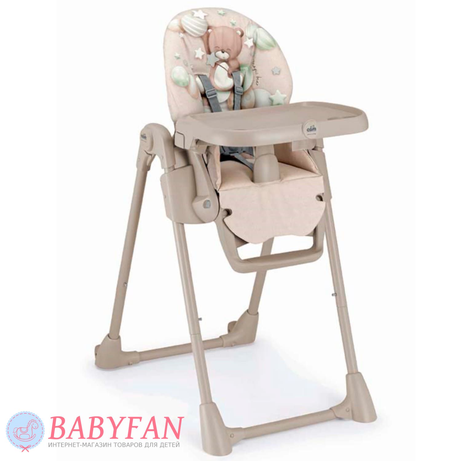 - съемный большой поднос, легко отодвигаемый ближе / дальше от ребенка. Чистота подноса также легко обеспечивается;