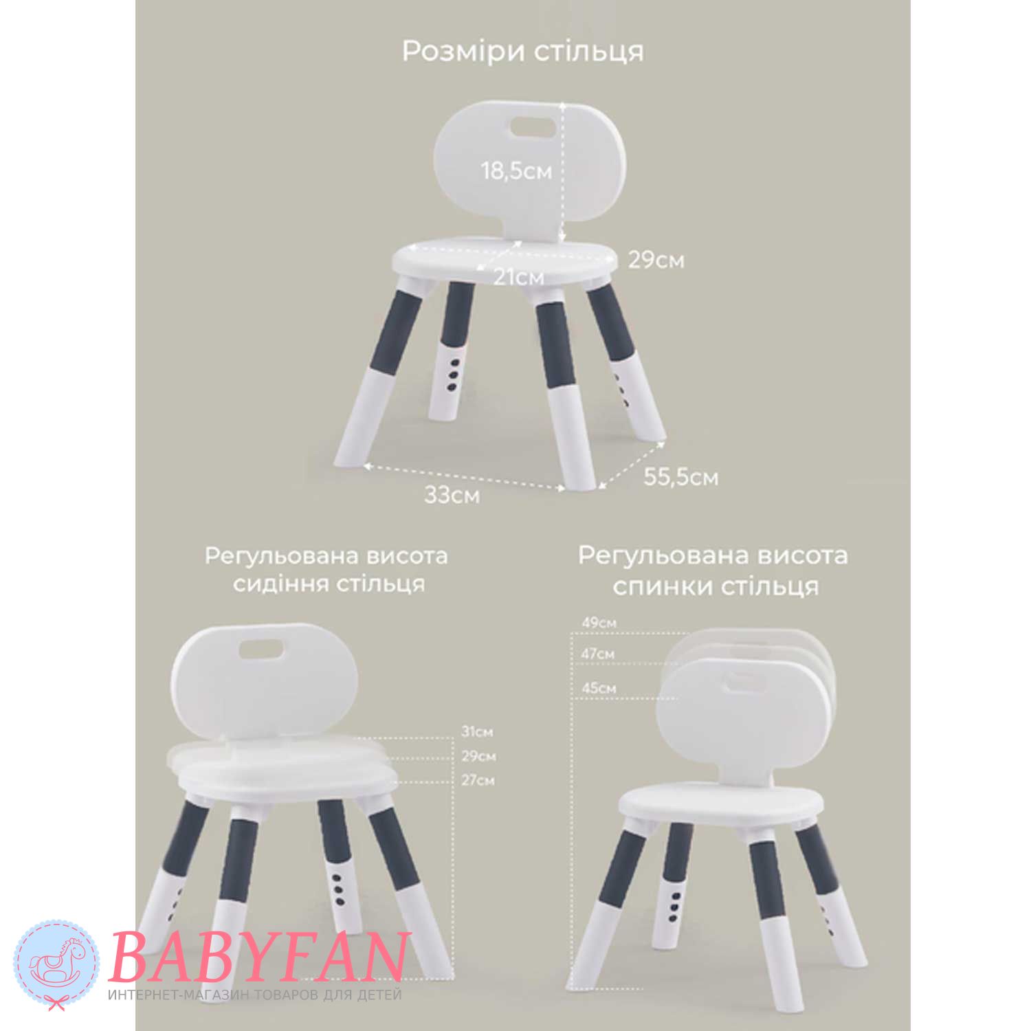 Ограничения по весу ребенка:для стула – 80 кг
