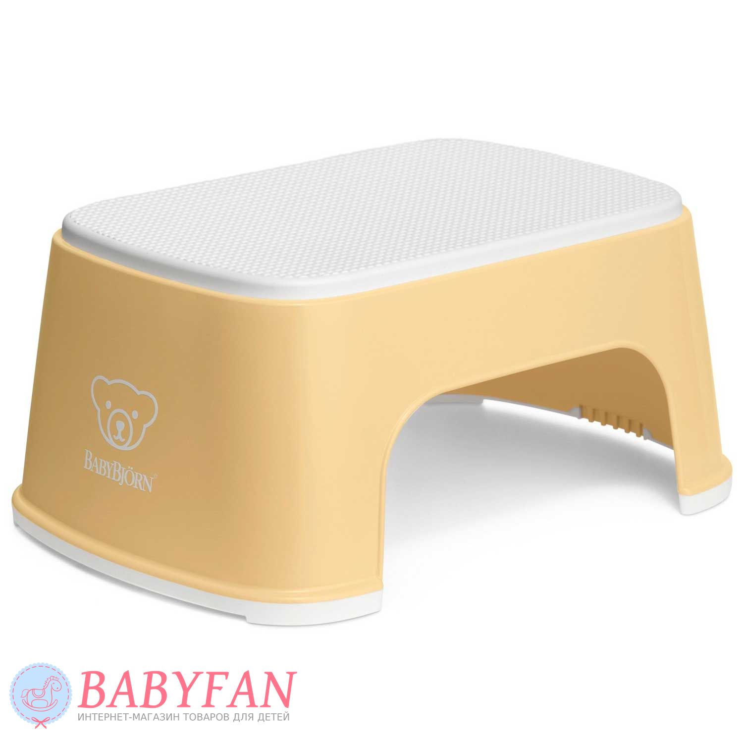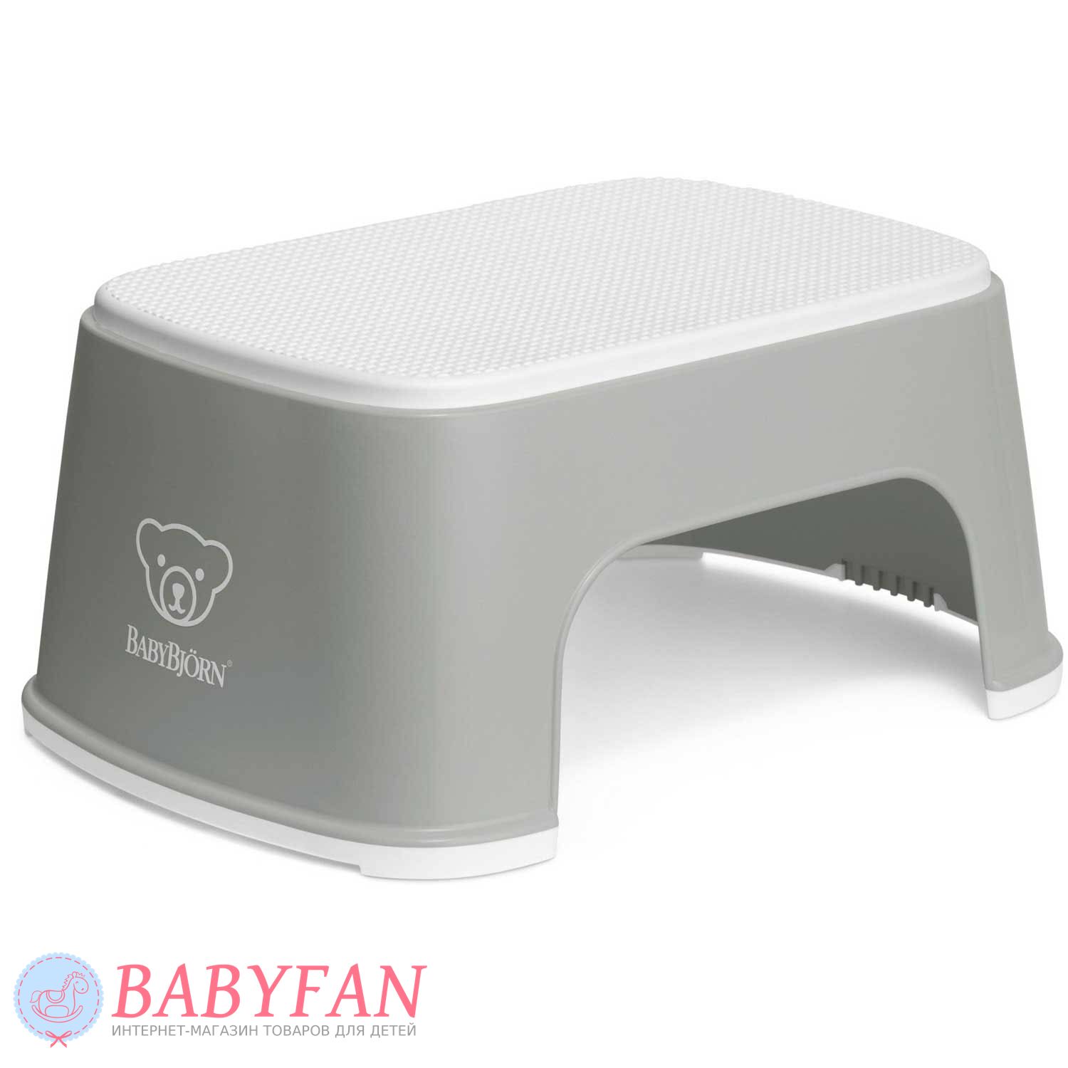 Табурет – подставка BabyBjorn – выполненна из специального материала поверхность, исключает соскальзывание ребёнка, даже если у него мокрые ноги. Предусмотренные снизу резиновые элементы обеспечивают устойчивость на полу, когда сверху находится малыш. Благодаря особому дизайну табурет-подставка стабилен и не может перевернуться.