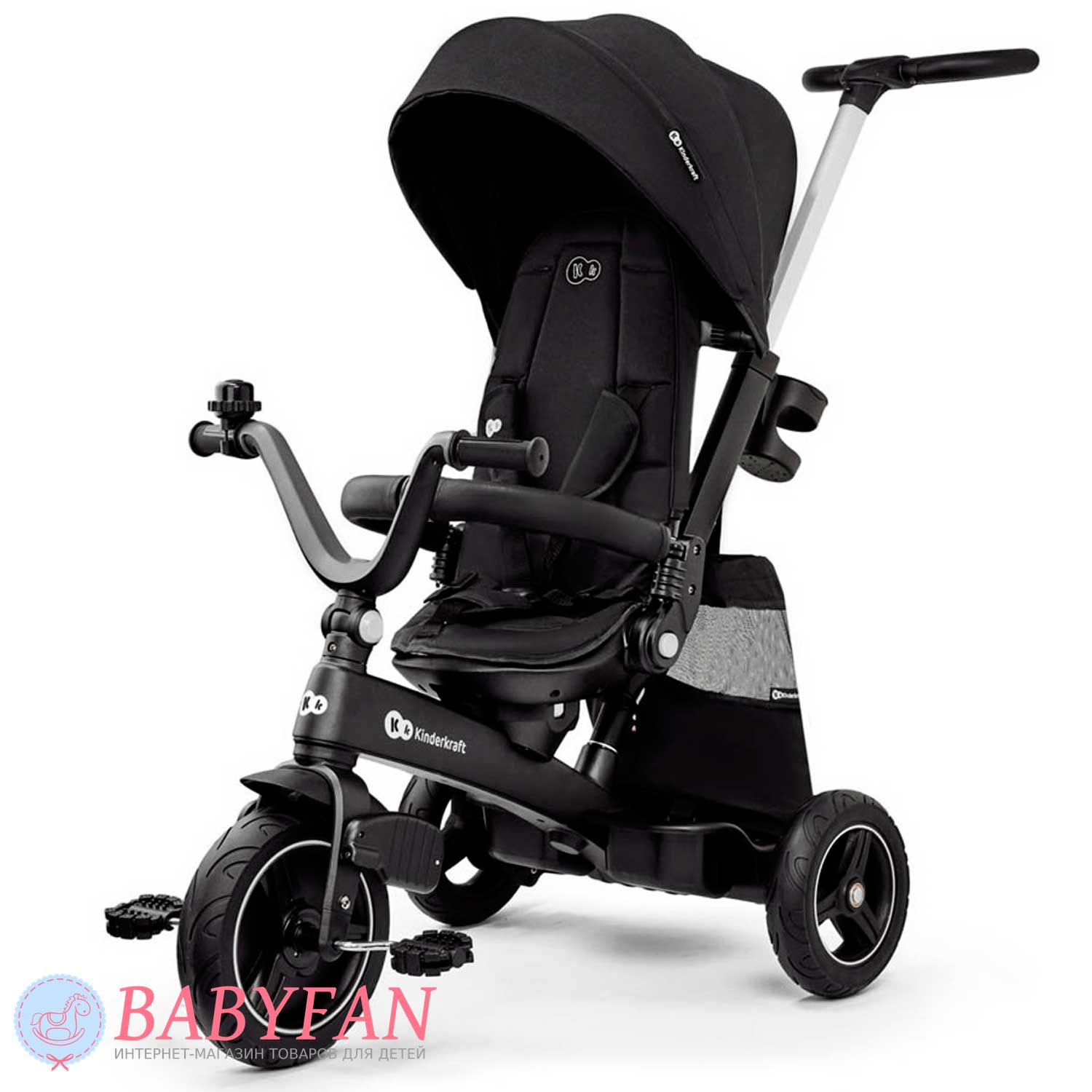 Kinderkraft Easytwist – модульный трехколесный велосипед 5 в 1 с поворотным на 360° сиденьем и регулируемой спинкой для детей от 9 месяцев до 5 лет, допустимая нагрузка – до 20 кг. Выполнен в классическом современном дизайне – педали расположены на переднем колесе. Изготовлен из качественных, практичных и прочных материалов: рама из магниевого сплава, покрышки колес из полиуретана, текстильные элементы из водоотталкивающего материала. По мере взросления ребенка велосипед трансформируется из трехколесной коляски с положением сиденья лицом к маме и поворотной родительской ручкой в полностью автономный трехколесный велосипед.