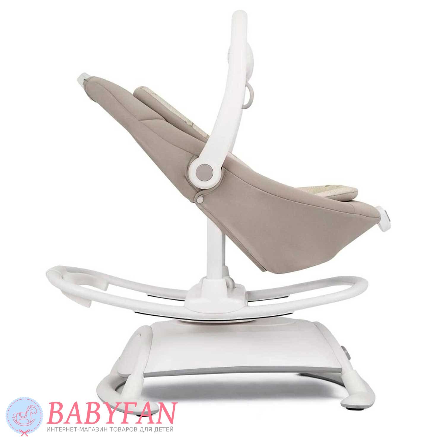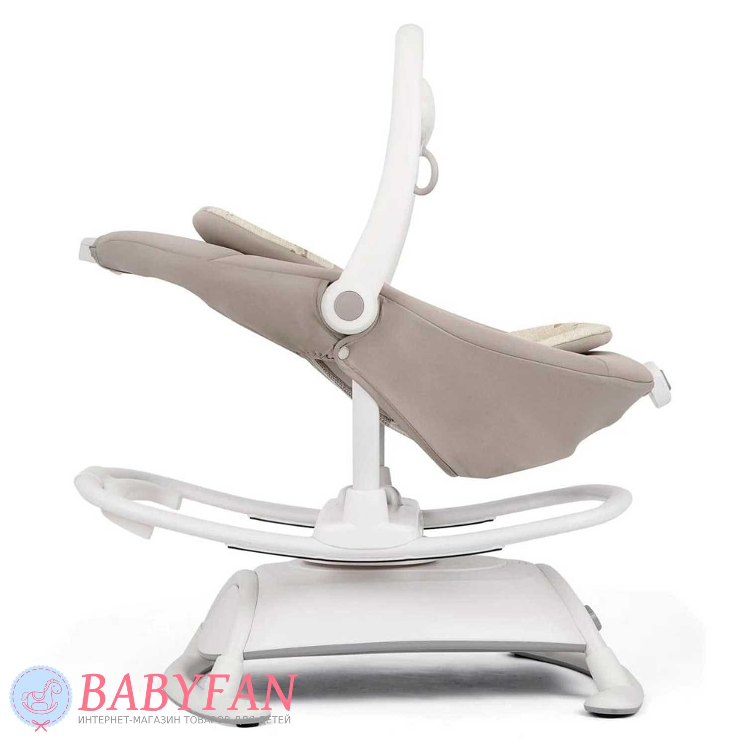 - сидение легко снимается с базы, трансформируясь в удобный шезлонг, качающийся от внешнего воздействия либо благодаря движениям ребенка;