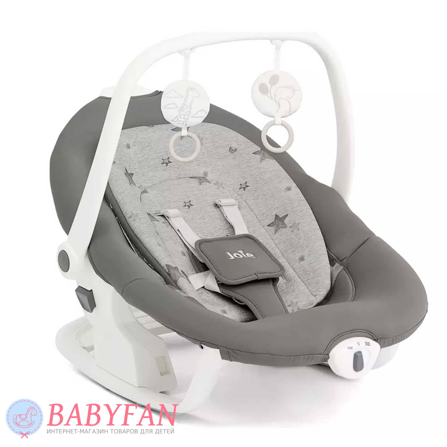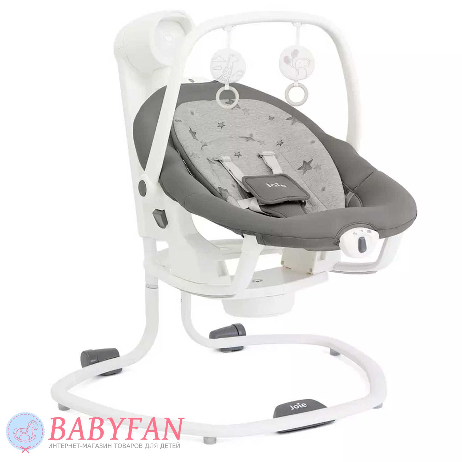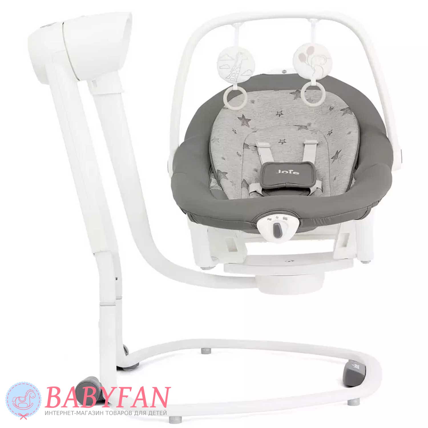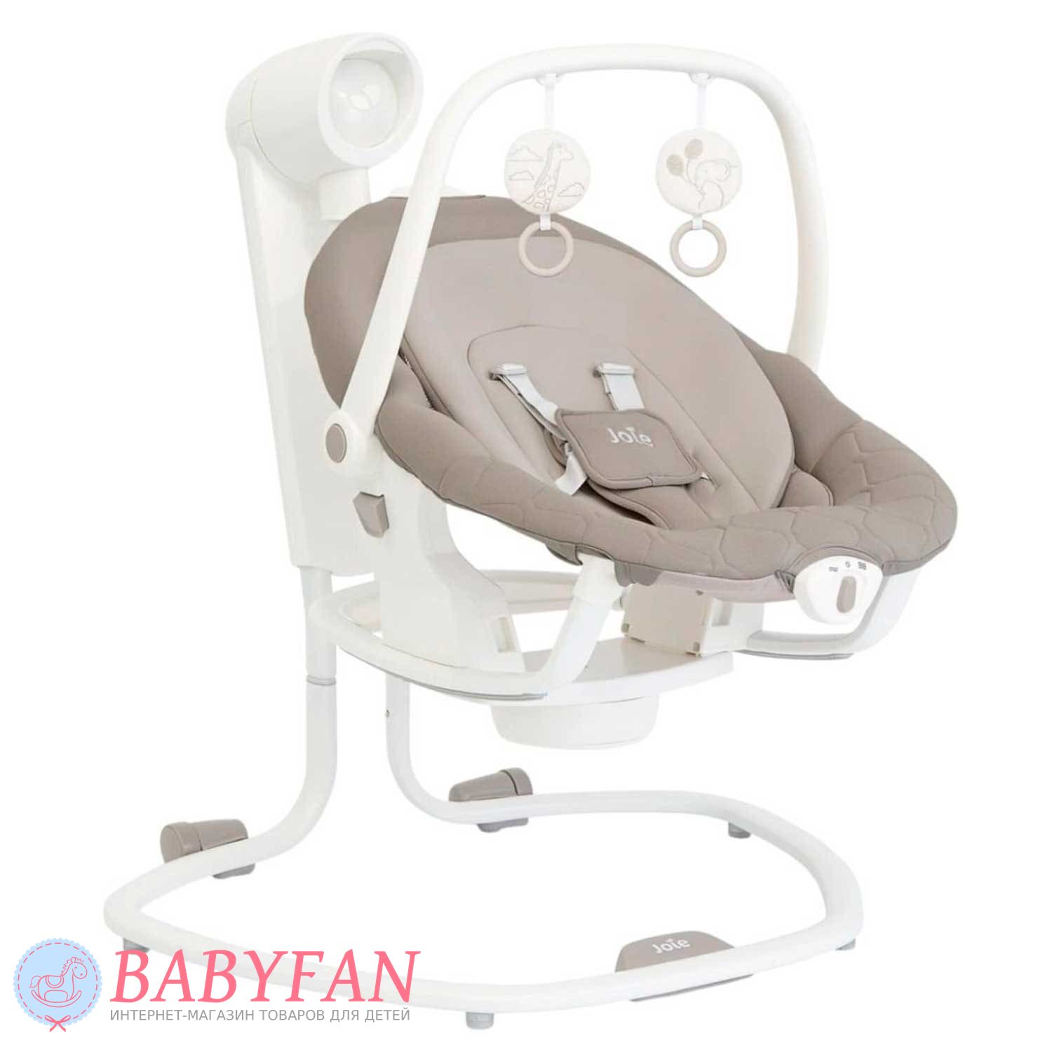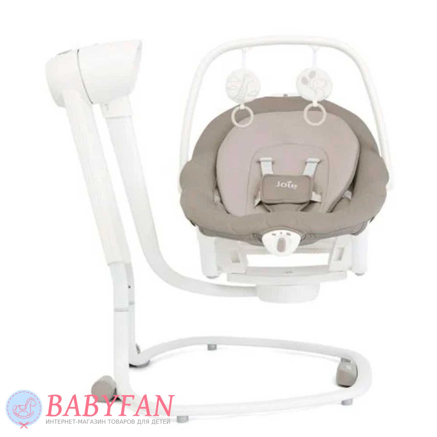Электронные качели Joie Serina 2 в 1 – оригинальная конструкция, выполняющая функции качелей и отдельного уютного переносного шезлонга. Различные траектории качания, скорости качания и вибрации, регулируемый наклон спинки, музыкальное сопровождение с мелодиями на выбор, колесики на основании, качественная сборка и безопасные материалы – многофункциональное устройство, удобное в эксплуатации обеспечивает ребенку абсолютную безопасность и максимальный комфорт.