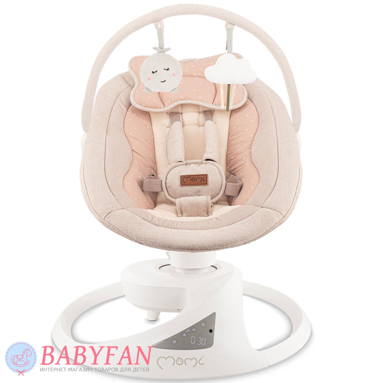 Управление максимально простое и удобное — вы легко настроите скорость укачивания, таймер и музыку. Центр работает тихо, не мешая отдыху ребенка и не отвлекая родителей. Компактная конструкция и современный внешний вид делают MoMi Pearl отличным дополнением любого интерьера, а устойчивое основание гарантирует безопасность в использовании.