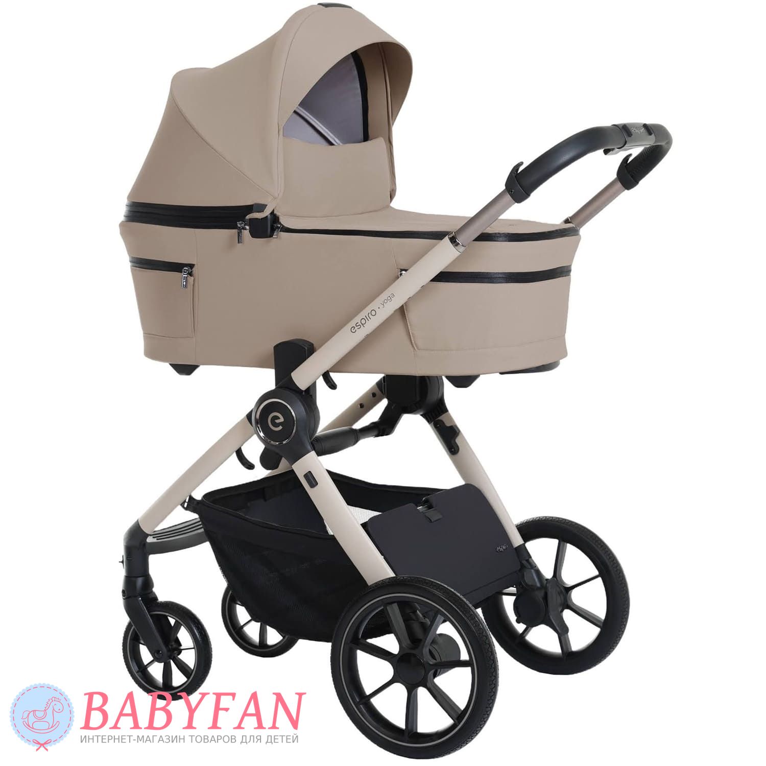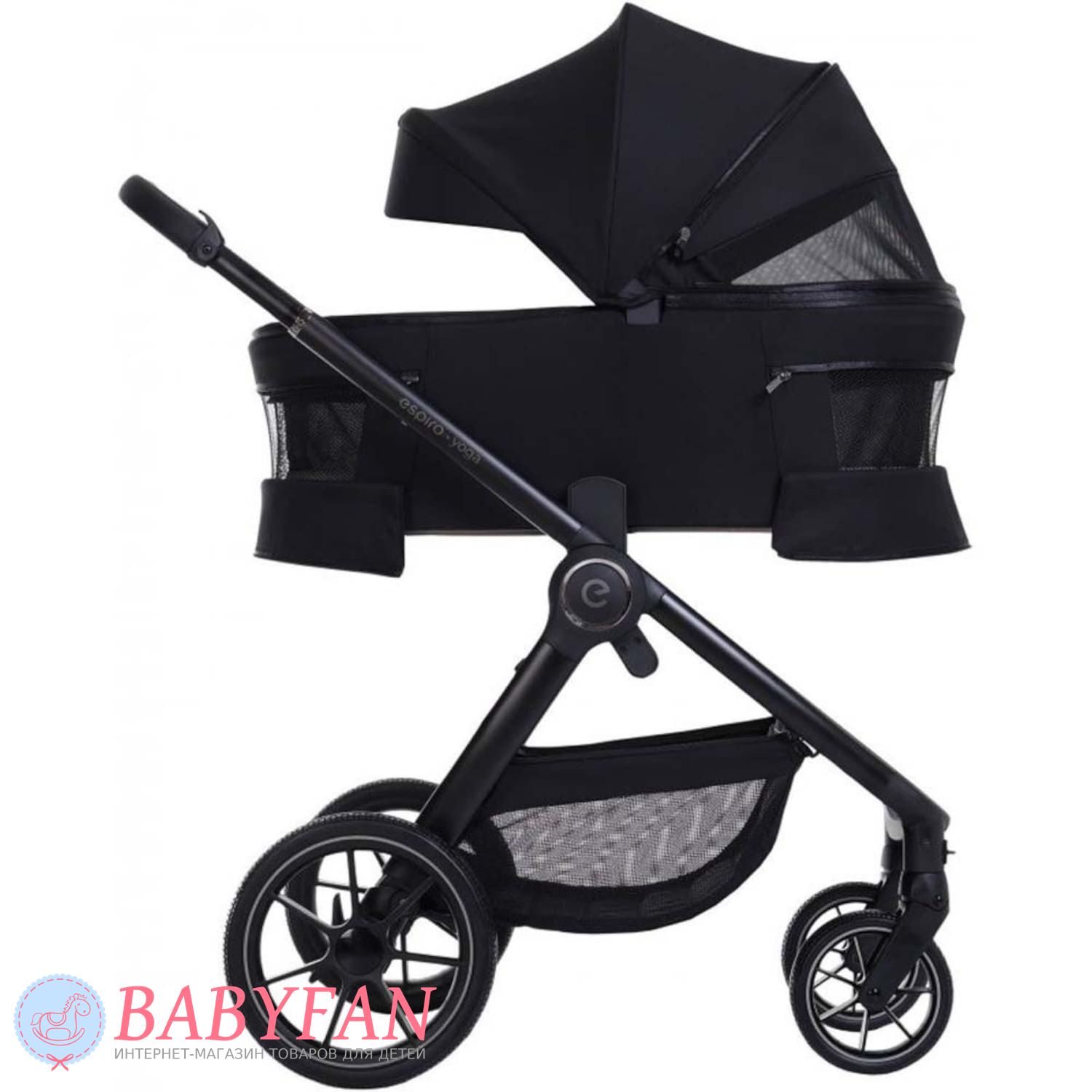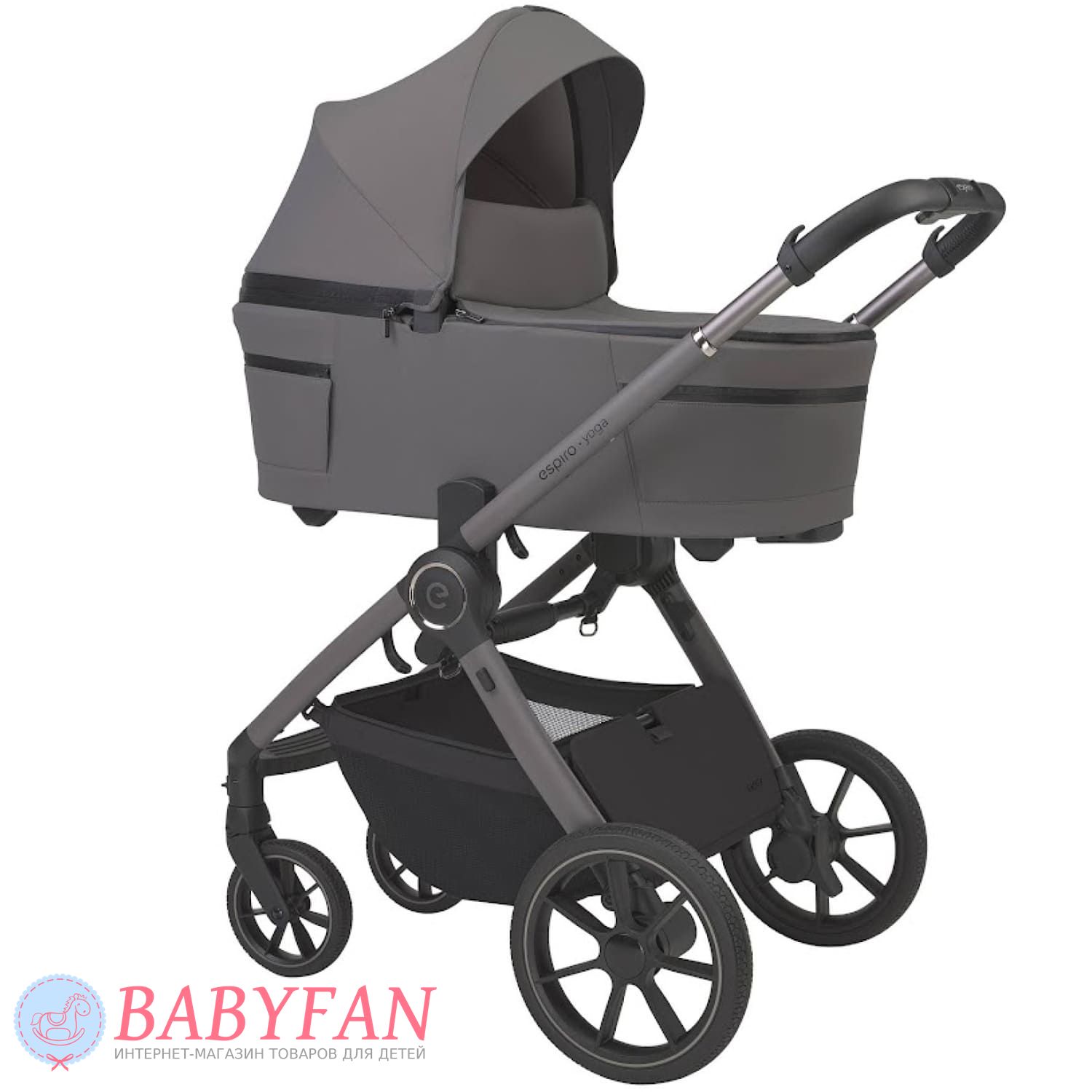Универсальная коляска 2 в 1 Espiro Yoga – модульная коляска 2 в 1 для детей от рождения до 4 лет с каркасной люлькой, реверсивным прогулочным блоком и легким алюминиевым шасси. По мере роста ребенка на шасси устанавливается сначала складная люлька для новорожденных Espiro Yoga, а затем прогулочный блок – в направлении «лицом к маме» и по ходу движения. Коляска изготовлена из легких, прочных и практичных материалов – шасси алюминиевое, капюшоны люльки и прогулочного блока из водонепроницаемого материала с защитой от ультрафиолетового излучения, обивка прогулочного блока съемная. Внутрення часть обивки люльки изготовлена из натурального хлопка, стирается в машинке.