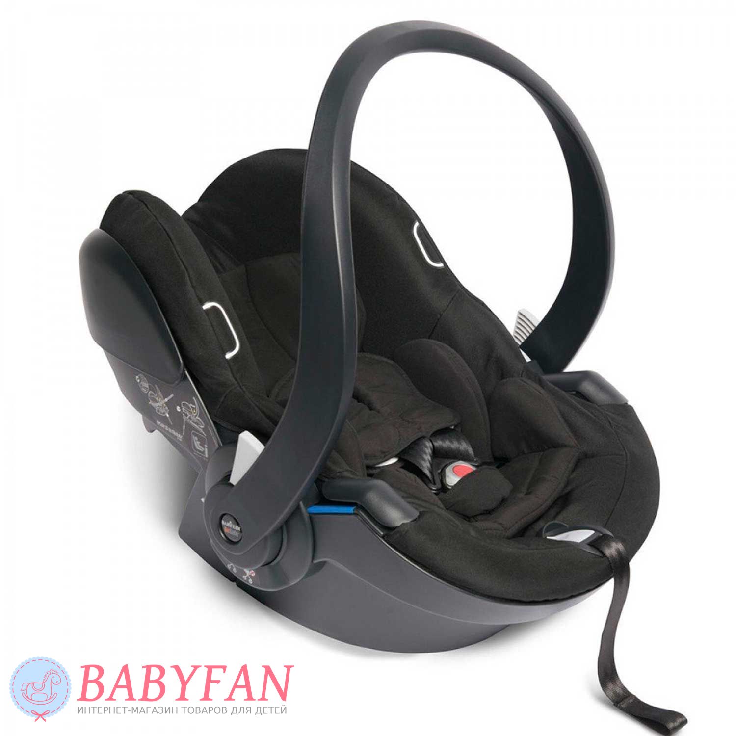 - модульна система дозволяє встановлювати автокрісло на базу ISOfix та шасі прогулянкових колясок;
