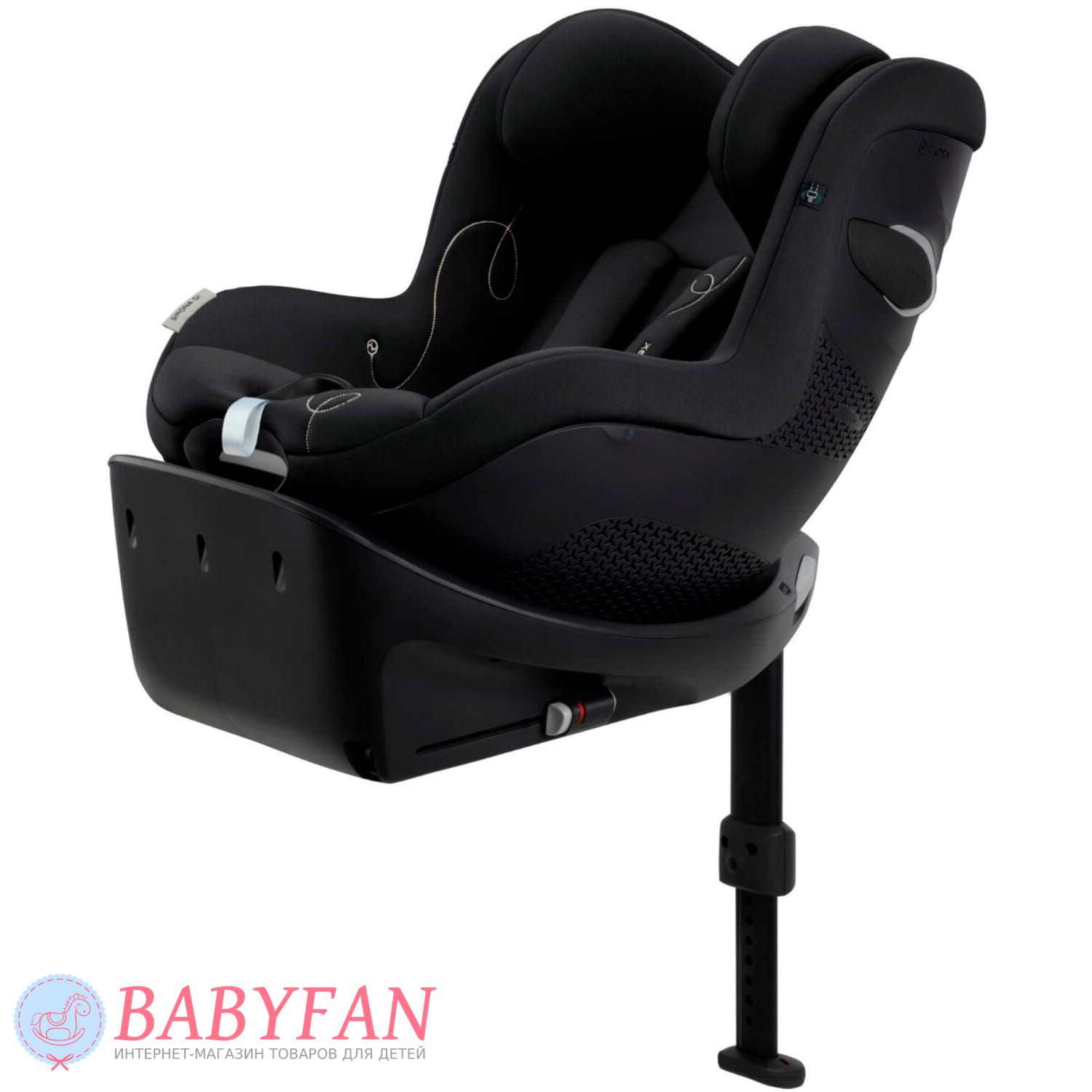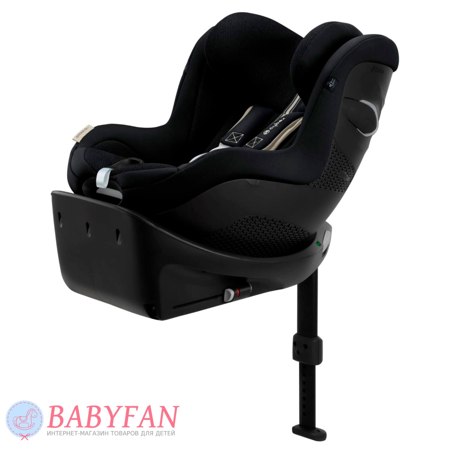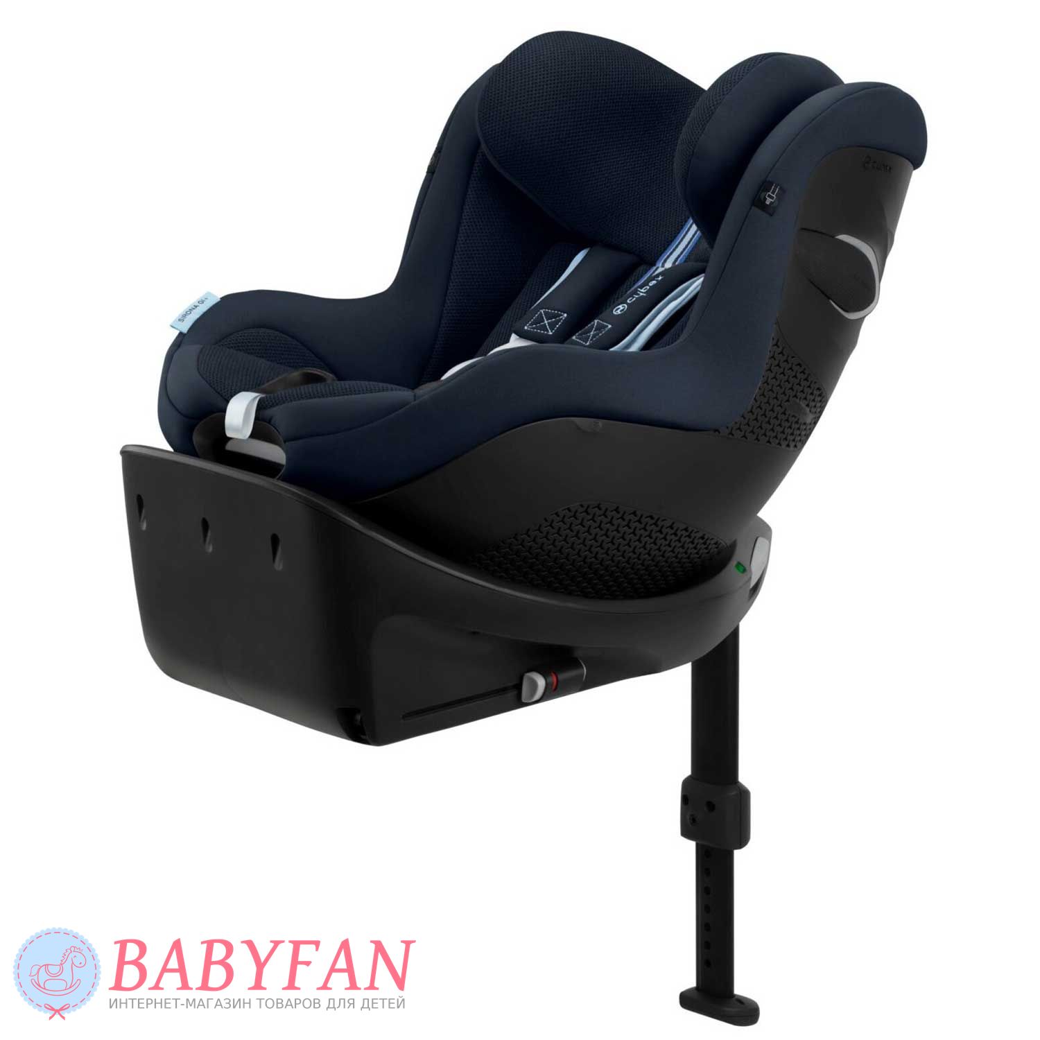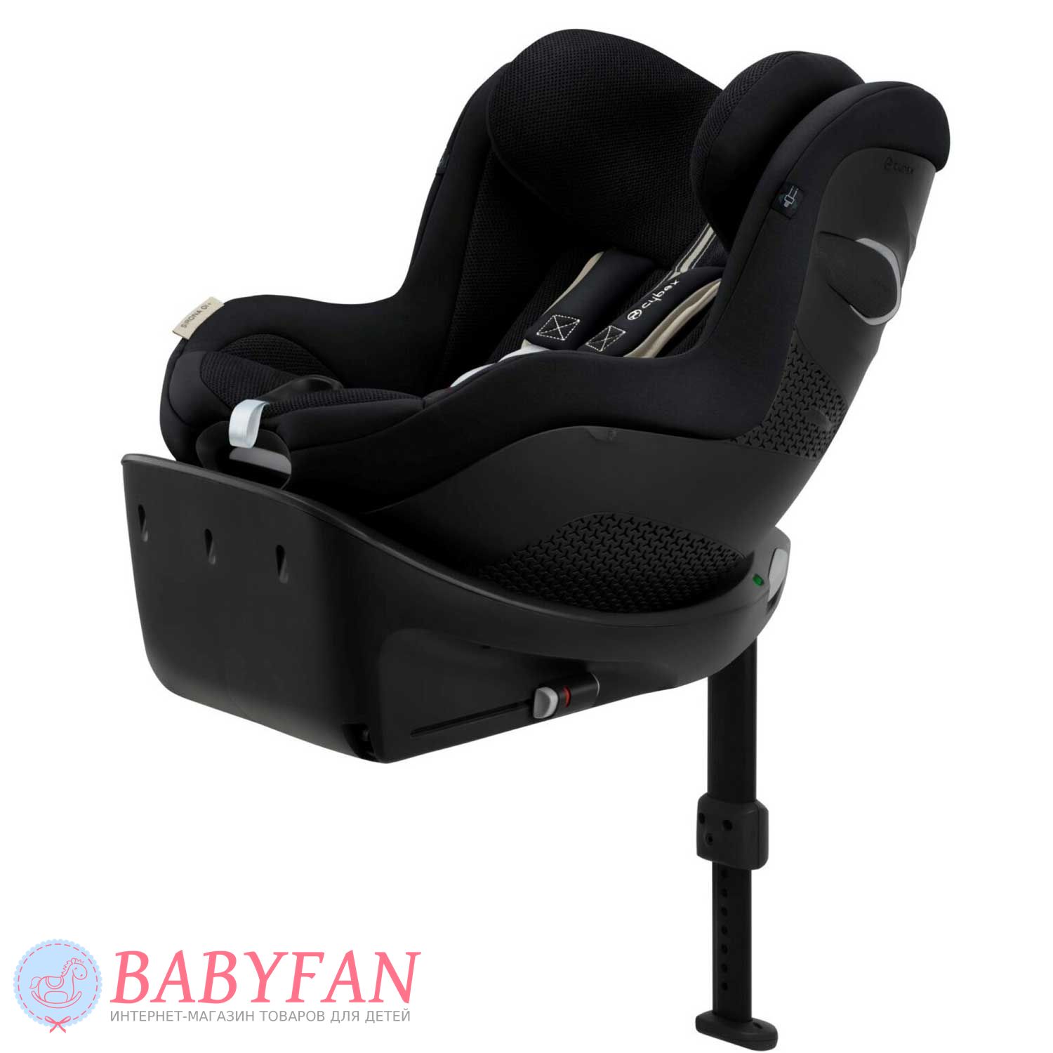 За безпеку дитини у Cybex Sirona Gi i-Size відповідають 5-точкові ремені безпеки з м'якими плечовими накладками та центральним натягувачем. На базі крісло регулюється по нахилу і повертається навколо своєї осі на 360º в будь-якому напрямку однією рукою. Підголівник регулюється за висотою у 12 положеннях. Пряжки замку при посадці та висадці дитини можна зафіксувати на боковинах автокрісла за допомогою вбудованих магнітів. Лінійний бічний захист забезпечує додатковий захист дитини при бічних ударах.