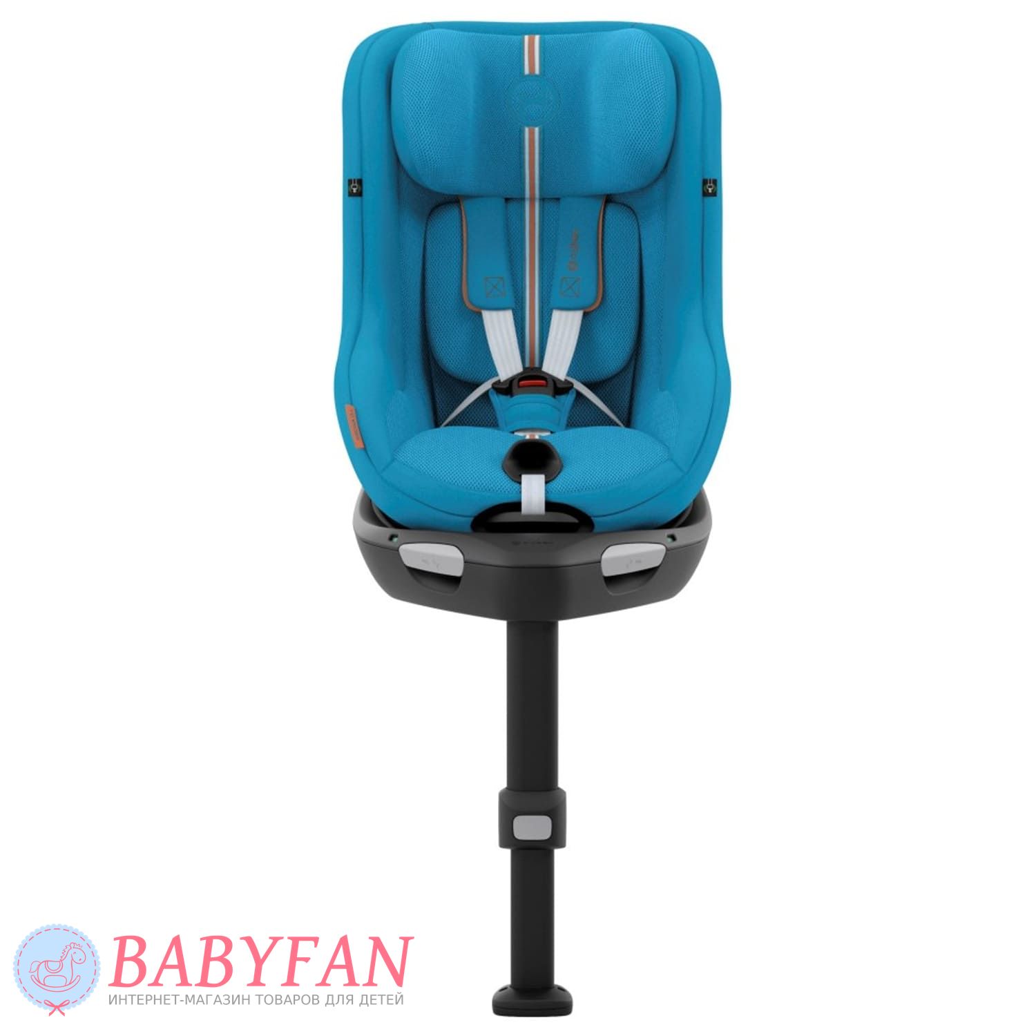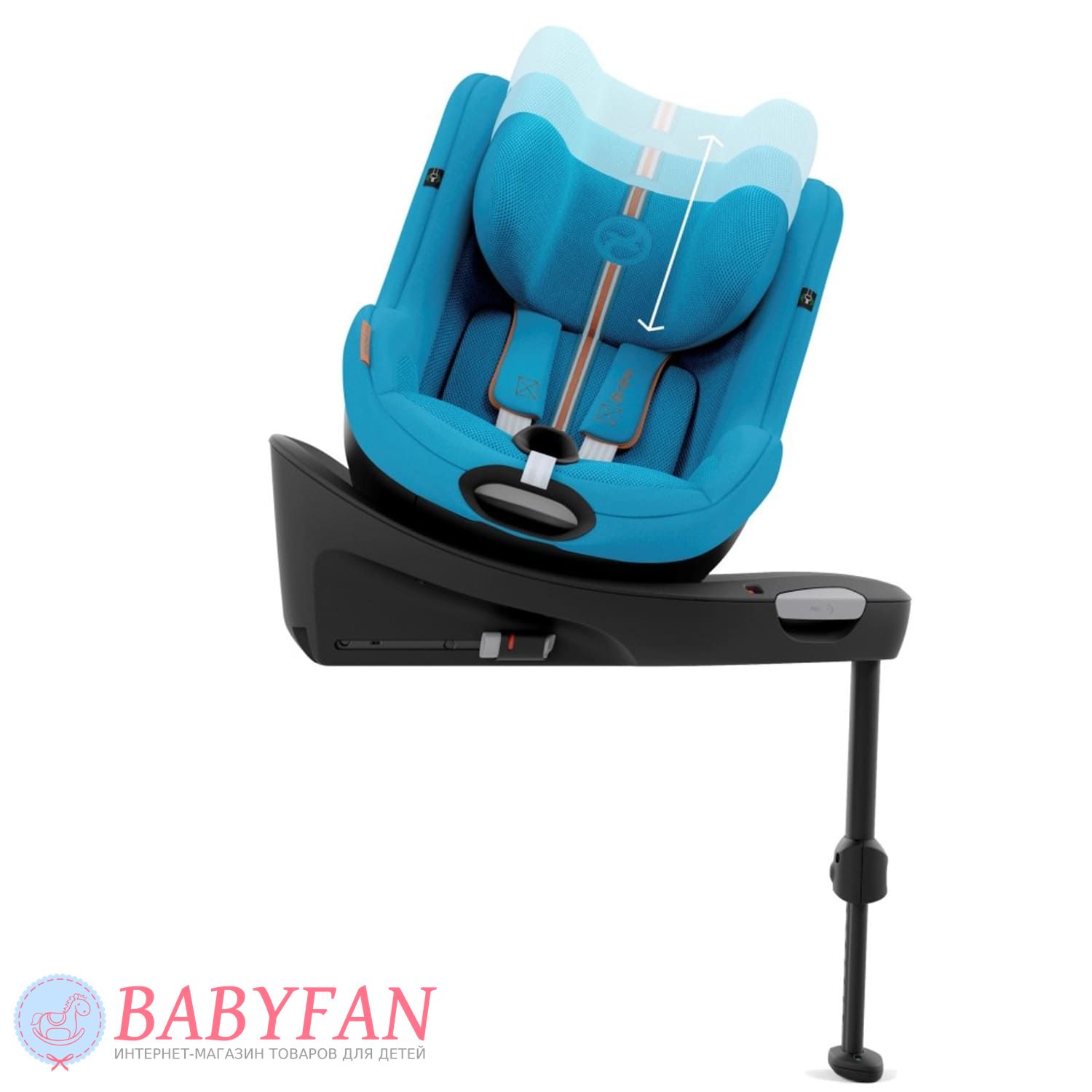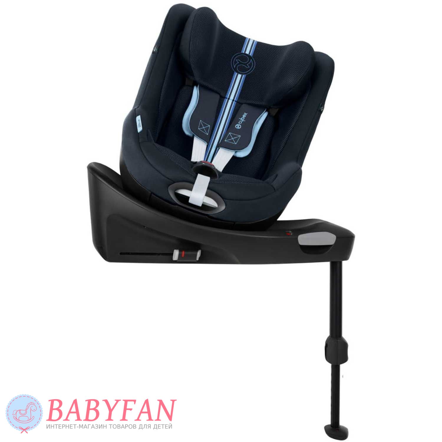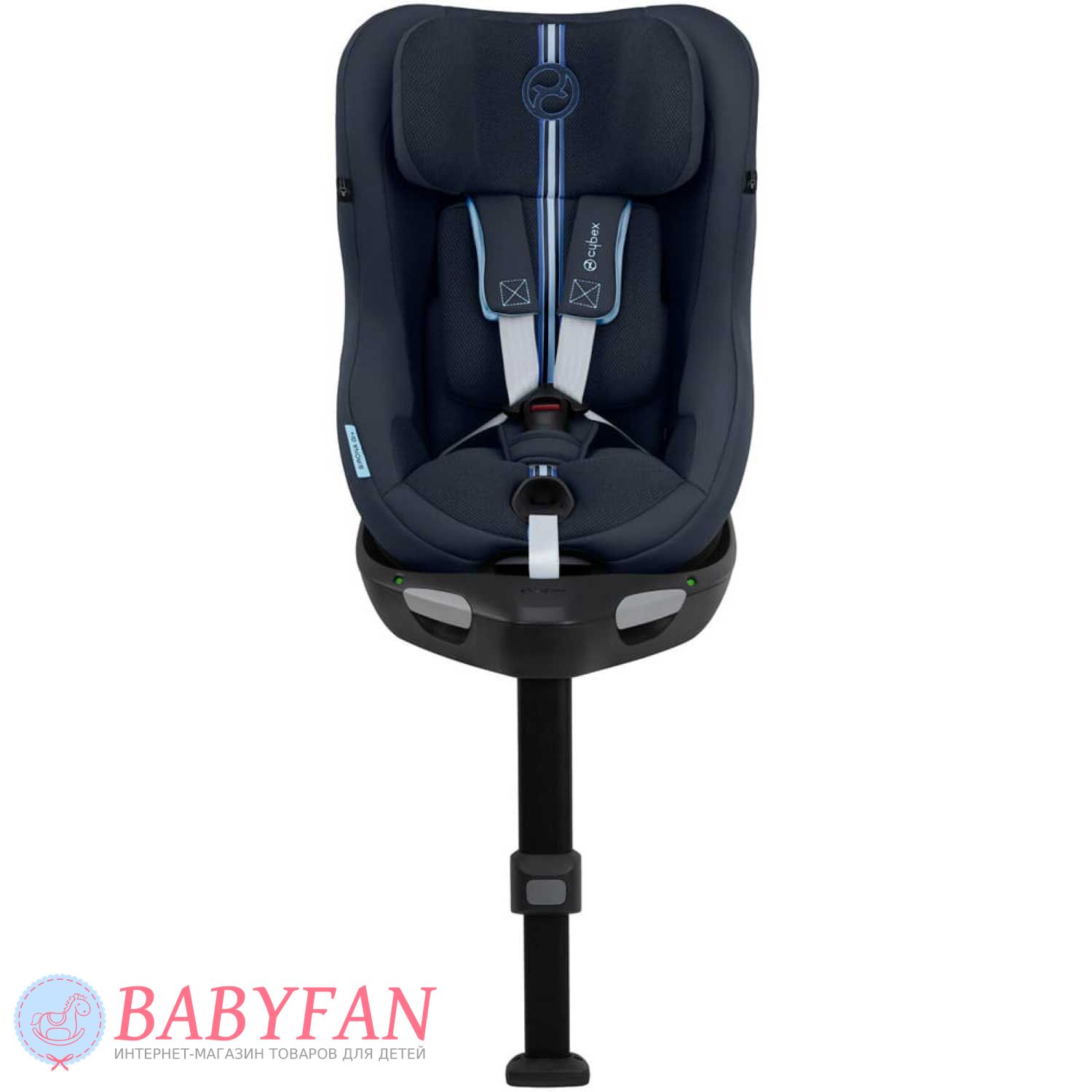 За безпеку дитини у Cybex Sirona Gi i-Size відповідають 5-точкові ремені безпеки з м'якими плечовими накладками та центральним натягувачем. На базі крісло регулюється по нахилу і повертається навколо своєї осі на 360º в будь-якому напрямку однією рукою. Підголівник регулюється за висотою у 12 положеннях. Пряжки замку при посадці та висадці дитини можна зафіксувати на боковинах автокрісла за допомогою вбудованих магнітів. Лінійний бічний захист забезпечує додатковий захист дитини при бічних ударах.