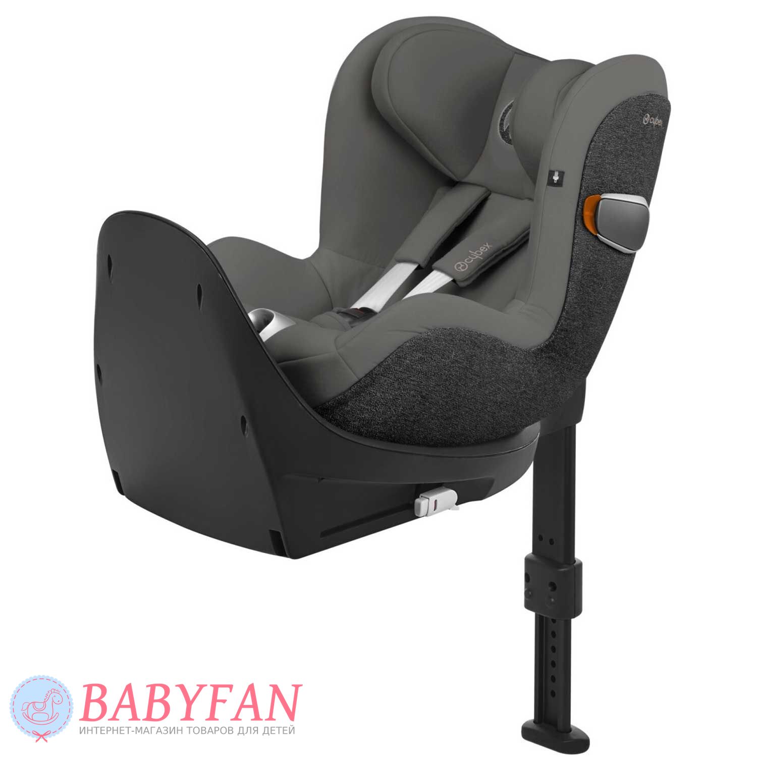 За безпеку дитини Cybex Sirona Zi i-Size відповідають 5-точкові ремені безпеки з м'якими плечовими накладками. Затягування ременів безпеки здійснюється центральним натягувачем. Легким рухом однієї руки крісло регулюється нахилом і повертається навколо своєї осі на 360º в будь-якому напрямку. В міру зростання дитини потужний підголівник регулюється по висоті. Завдяки вбудованим магнітам, пряжки замку при посадці та висадженні дитини можна зафіксувати на боковинах автокрісла. Спеціальний лінійний захист забезпечує додатковий захист дитини при бічних ударах.