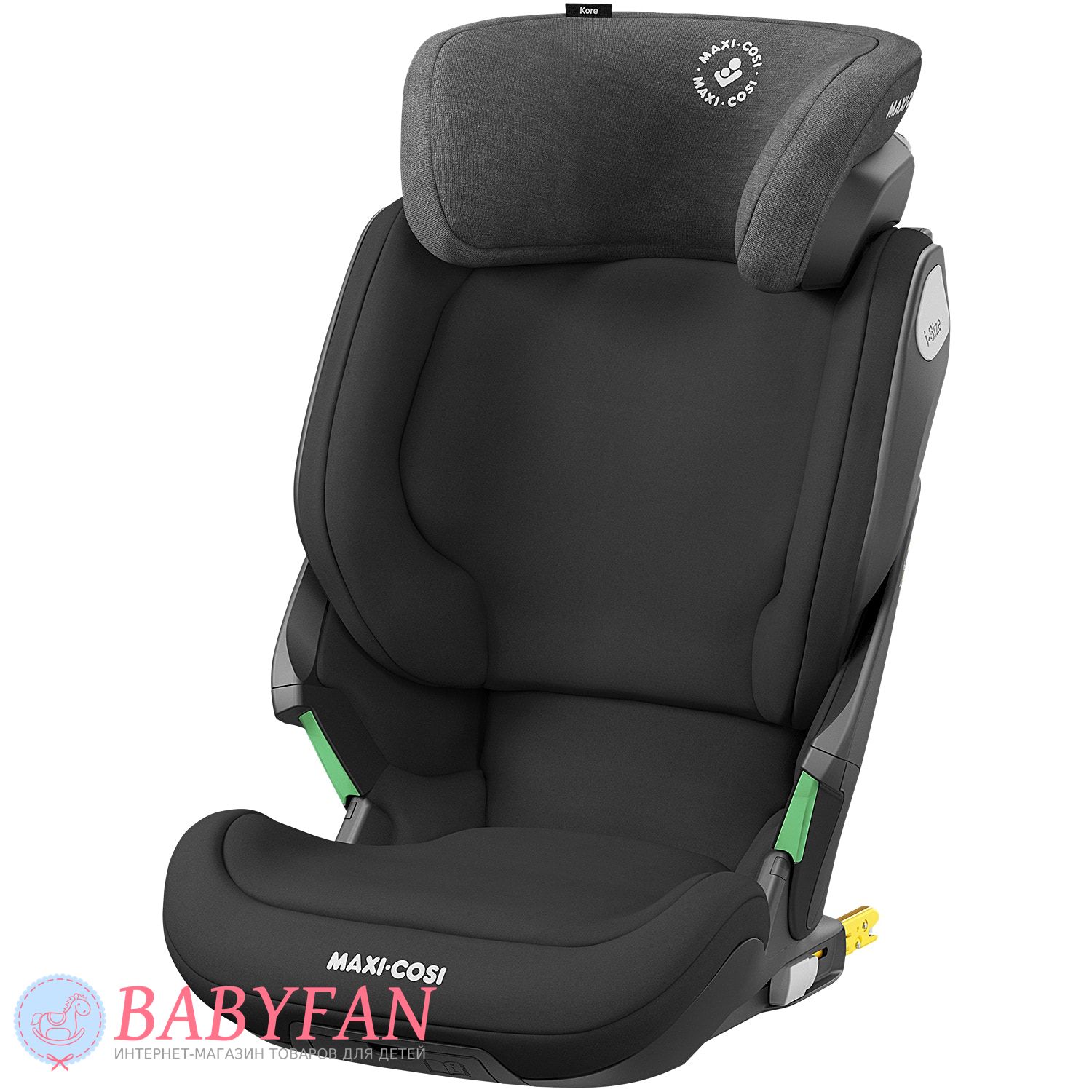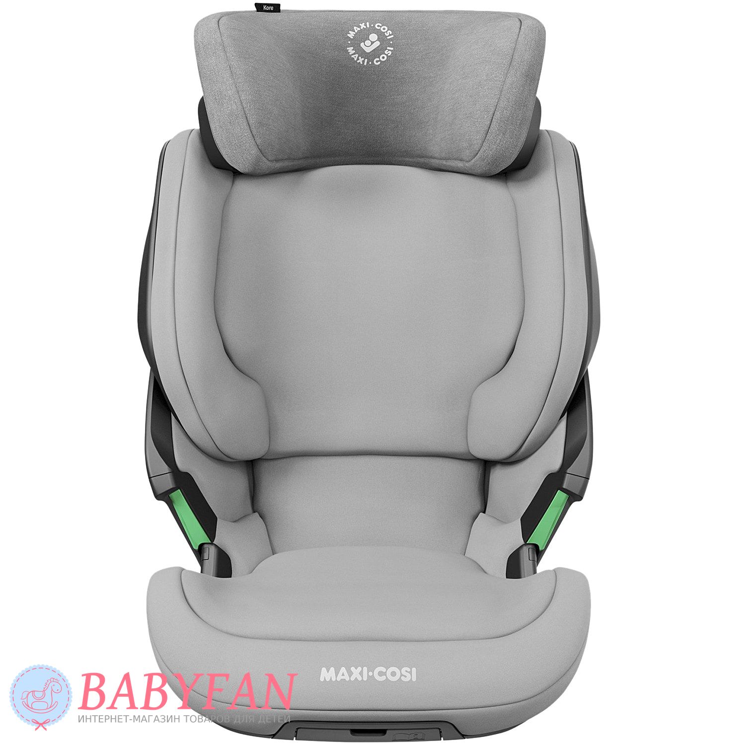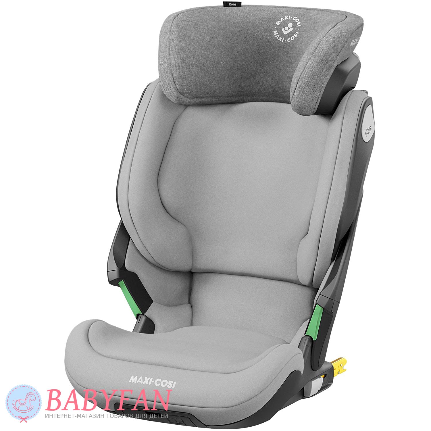 Maxi-Cosi Kore i-Size – це дитяче автокрісло вікової групи 2–3 для дітей від 15 до 36 кг у віці від 3 до 12 років з покращеною системою безпеки – з вираженим бічним захистом SPS Plus. Обмеження зростання дитини – від 100 до 150 см. Підлаштовується під ширину і зростання дитини – бічний захист піднімається разом із підголівником. Власних ременів безпеки в автокріслі немає.