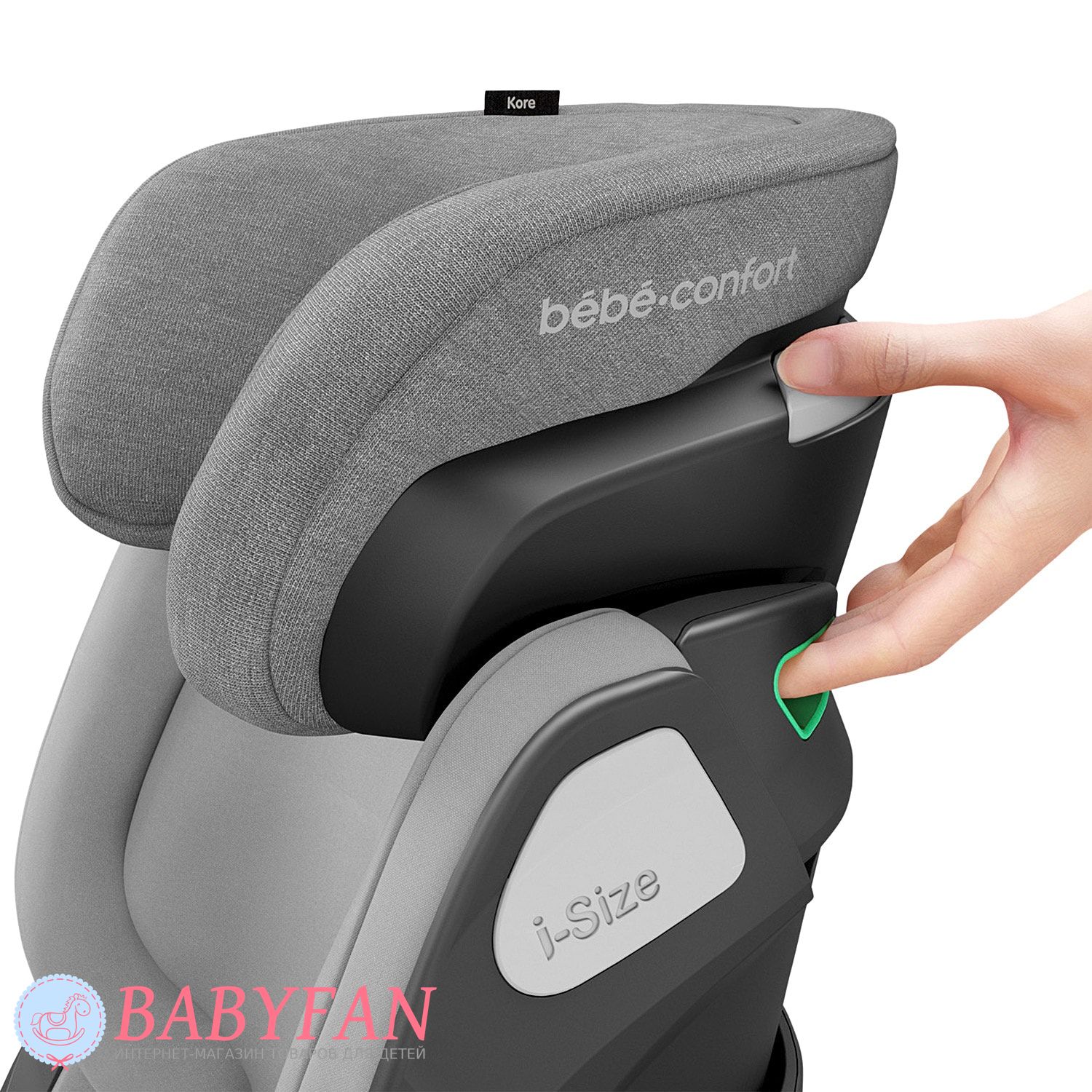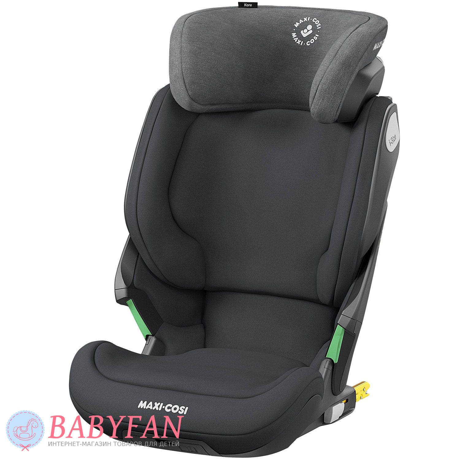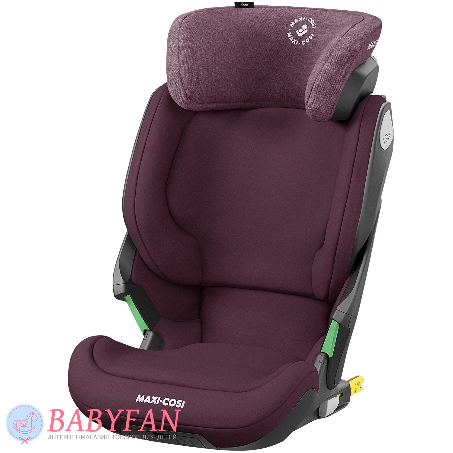 Maxi-Cosi Kore i-Size – це дитяче автокрісло вікової групи 2–3 для дітей від 15 до 36 кг у віці від 3 до 12 років з покращеною системою безпеки – з вираженим бічним захистом SPS Plus. Обмеження зростання дитини – від 100 до 150 см. Підлаштовується під ширину і зростання дитини – бічний захист піднімається разом із підголівником. Власних ременів безпеки в автокріслі немає.