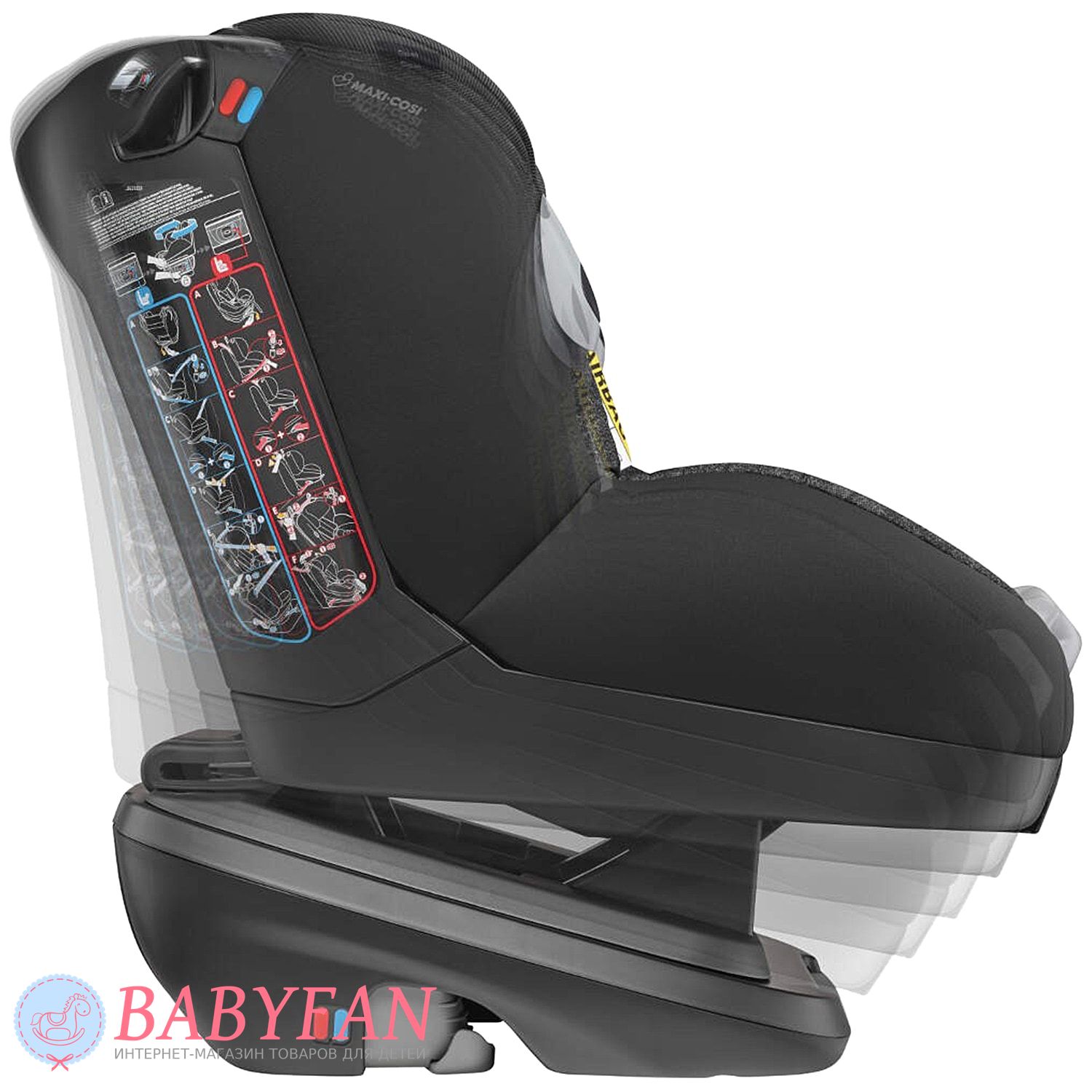 - надійна та спрощена установка автокрісла в 2-х варіантах. Для дітей групи 0+ (до 13 кг) крісло встановлюється в позиції «спиною до дороги», де вільне розташування ніжок дитини та оптимальний нахил автокрісла забезпечує максимально комфортні подорожі. Для дітей групи 1 (9-18 кг) крісло встановлюється в позиції «обличчям до дороги». Гранично проста переустановка положення легким одним рухом руки (основа автокрісла обертається, на передній панелі основи розташований перемикач положень);