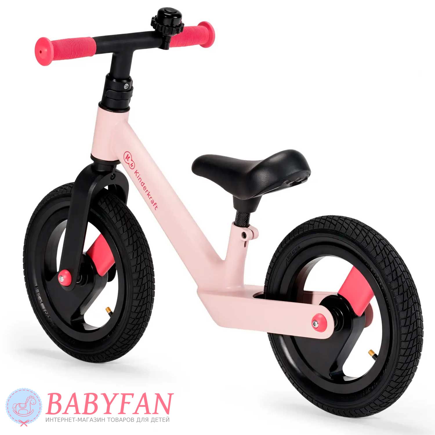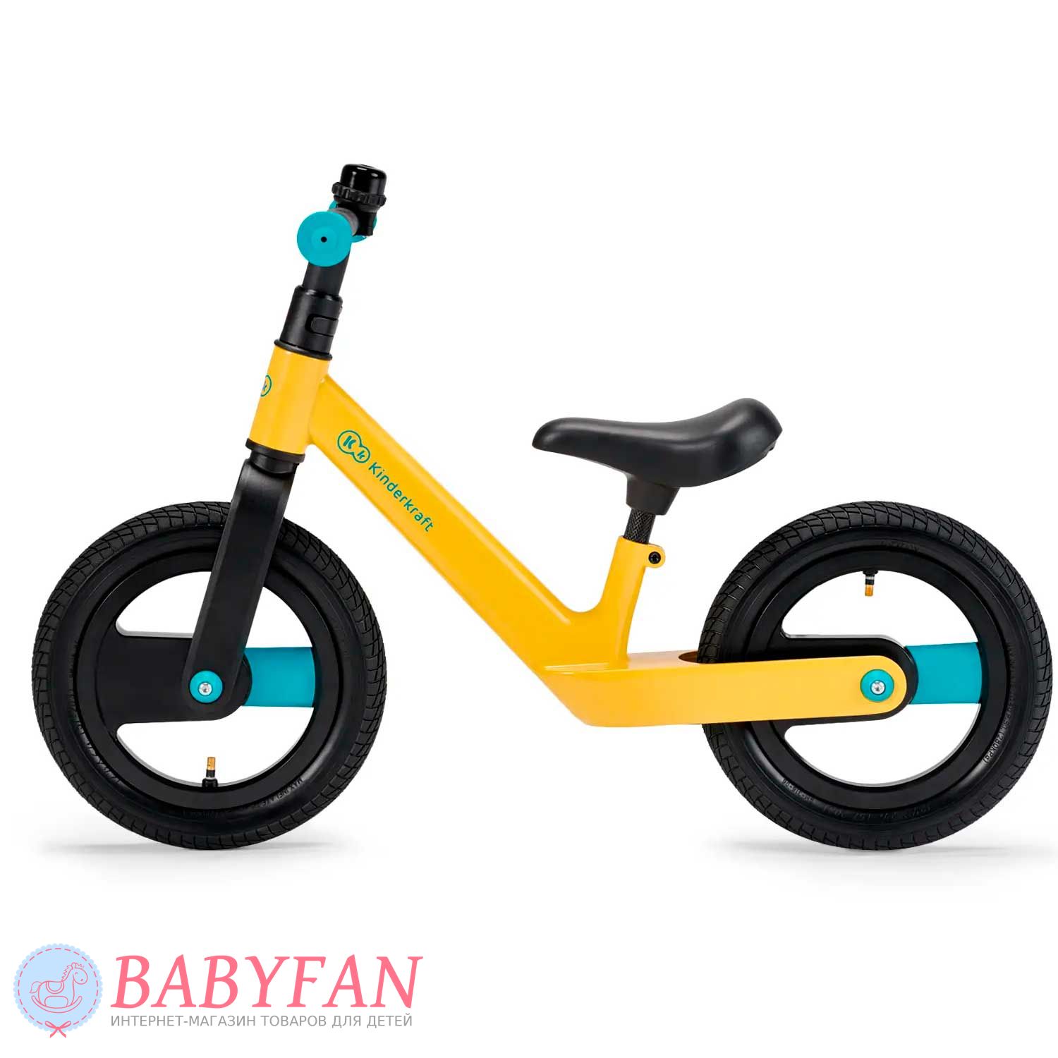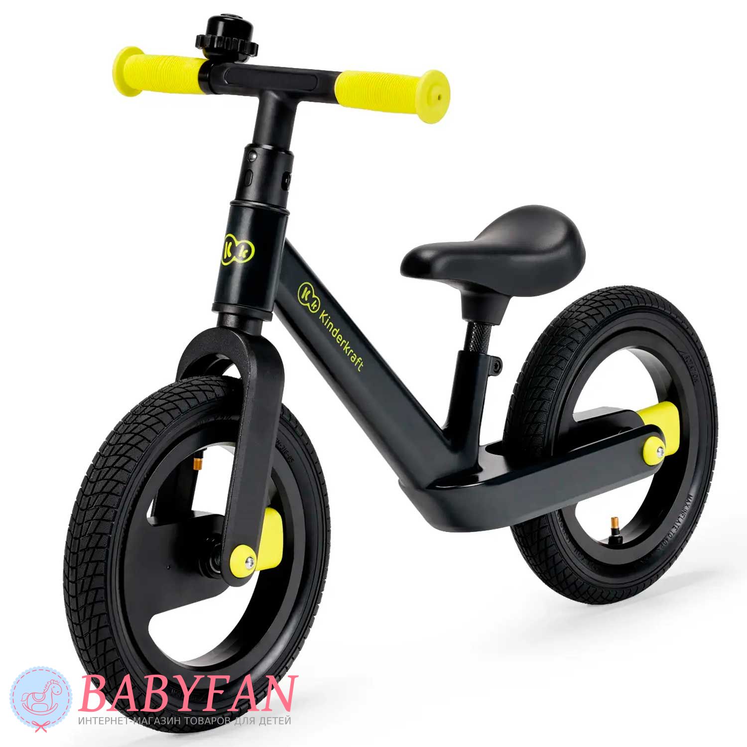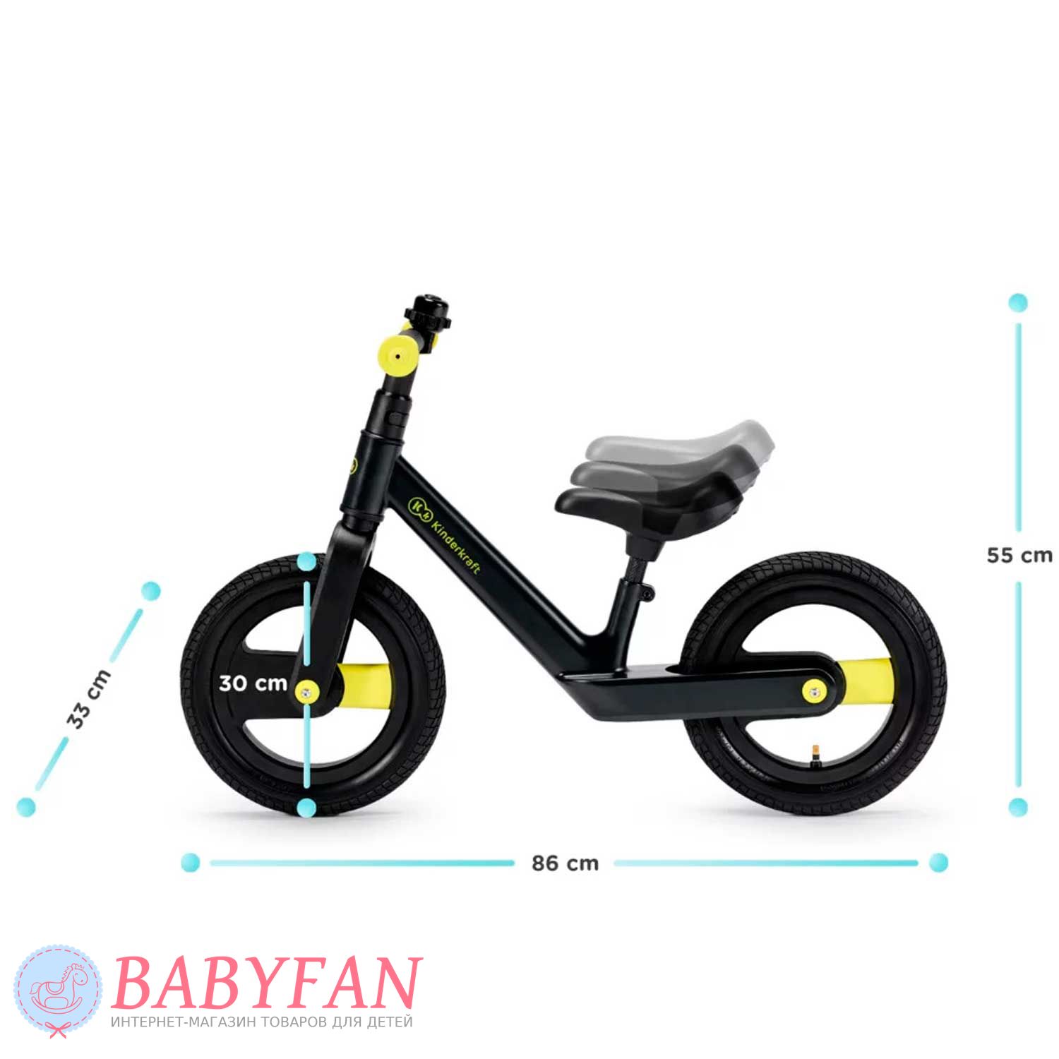 Kinderkraft Goswift – легкий та міцний двоколісний беговел з рамою з магнієвого сплаву з надувними колесами для дітей від 3 до 6 років, понад 80 см. Виконаний у вигляді спортивного велосипеда без крил. Виготовлений з міцних та довговічних матеріалів: рама з магнієвого сплаву, який на 30% легший за алюміній, відмінно поглинає вібрації і на 100% утилізується, покрита стійкою порошковою фарбою; сидіння м'яке, з екошкіри; покришки коліс із гуми, з протектором.