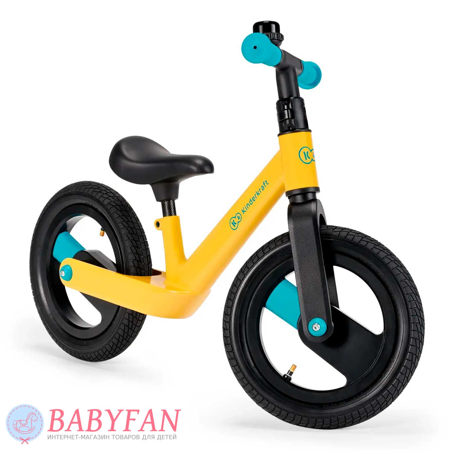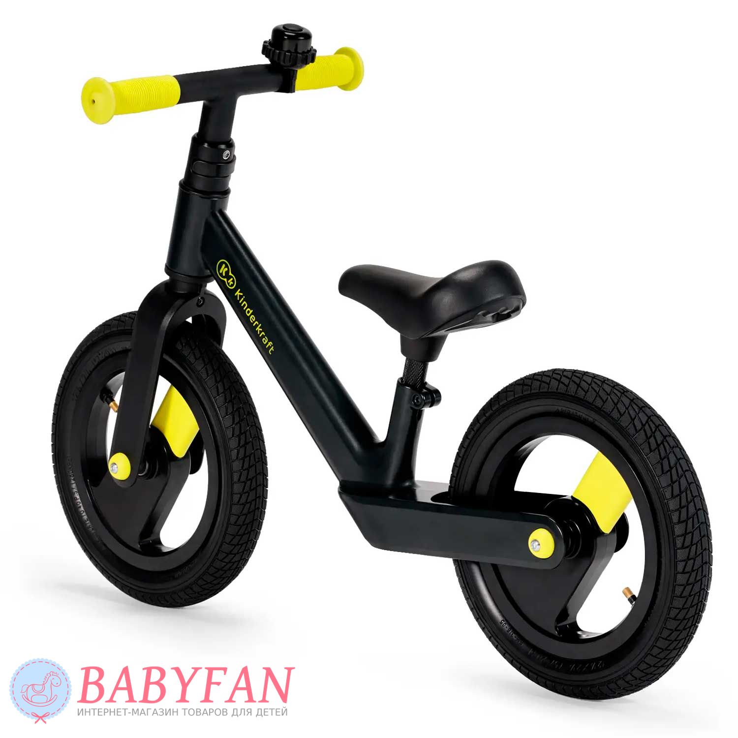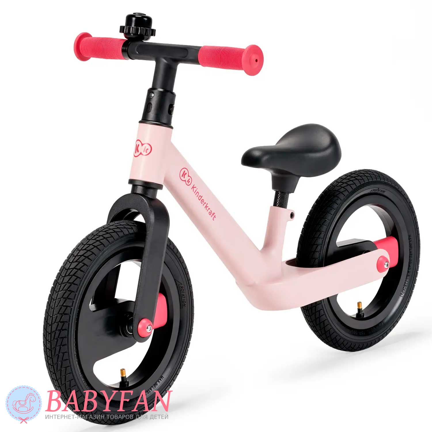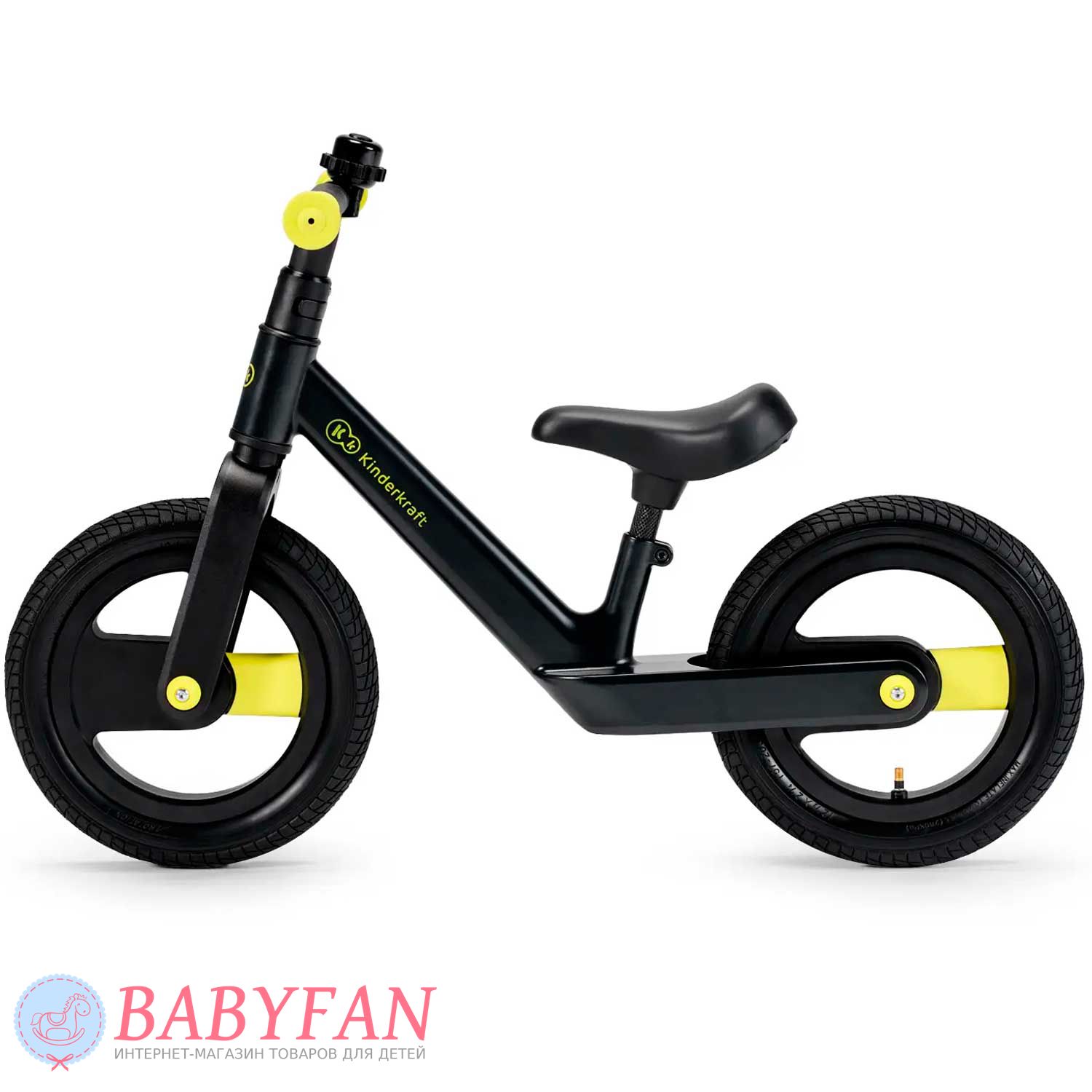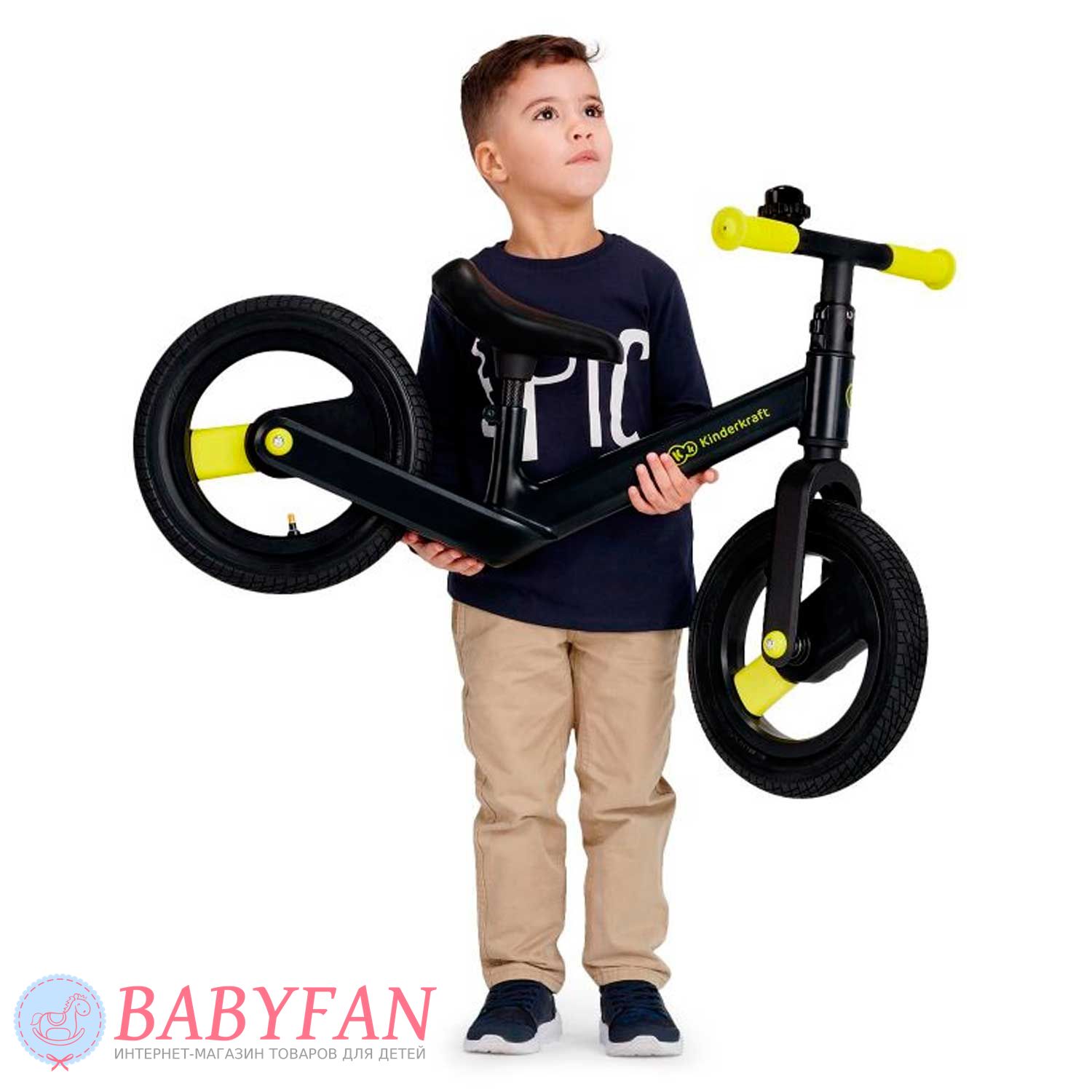 Kinderkraft Goswift – легкий та міцний двоколісний беговел з рамою з магнієвого сплаву з надувними колесами для дітей від 3 до 6 років, понад 80 см. Виконаний у вигляді спортивного велосипеда без крил. Виготовлений з міцних та довговічних матеріалів: рама з магнієвого сплаву, який на 30% легший за алюміній, відмінно поглинає вібрації і на 100% утилізується, покрита стійкою порошковою фарбою; сидіння м'яке, з екошкіри; покришки коліс із гуми, з протектором.