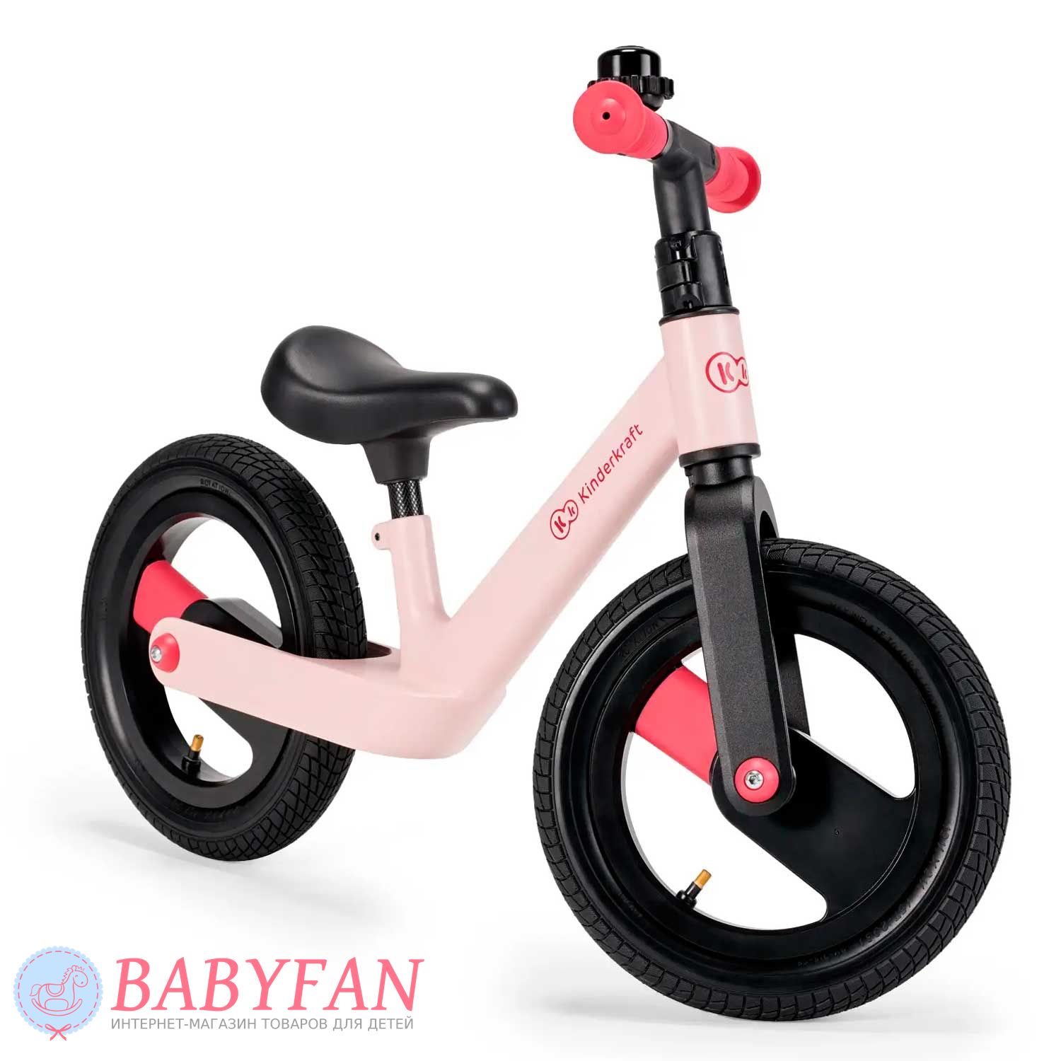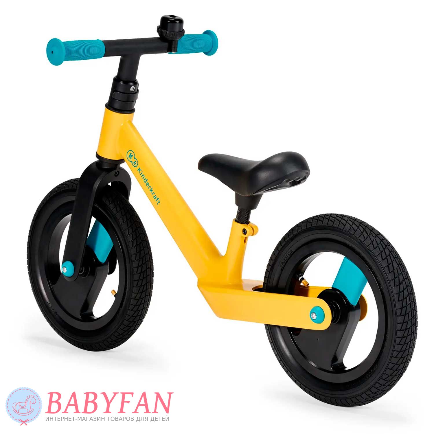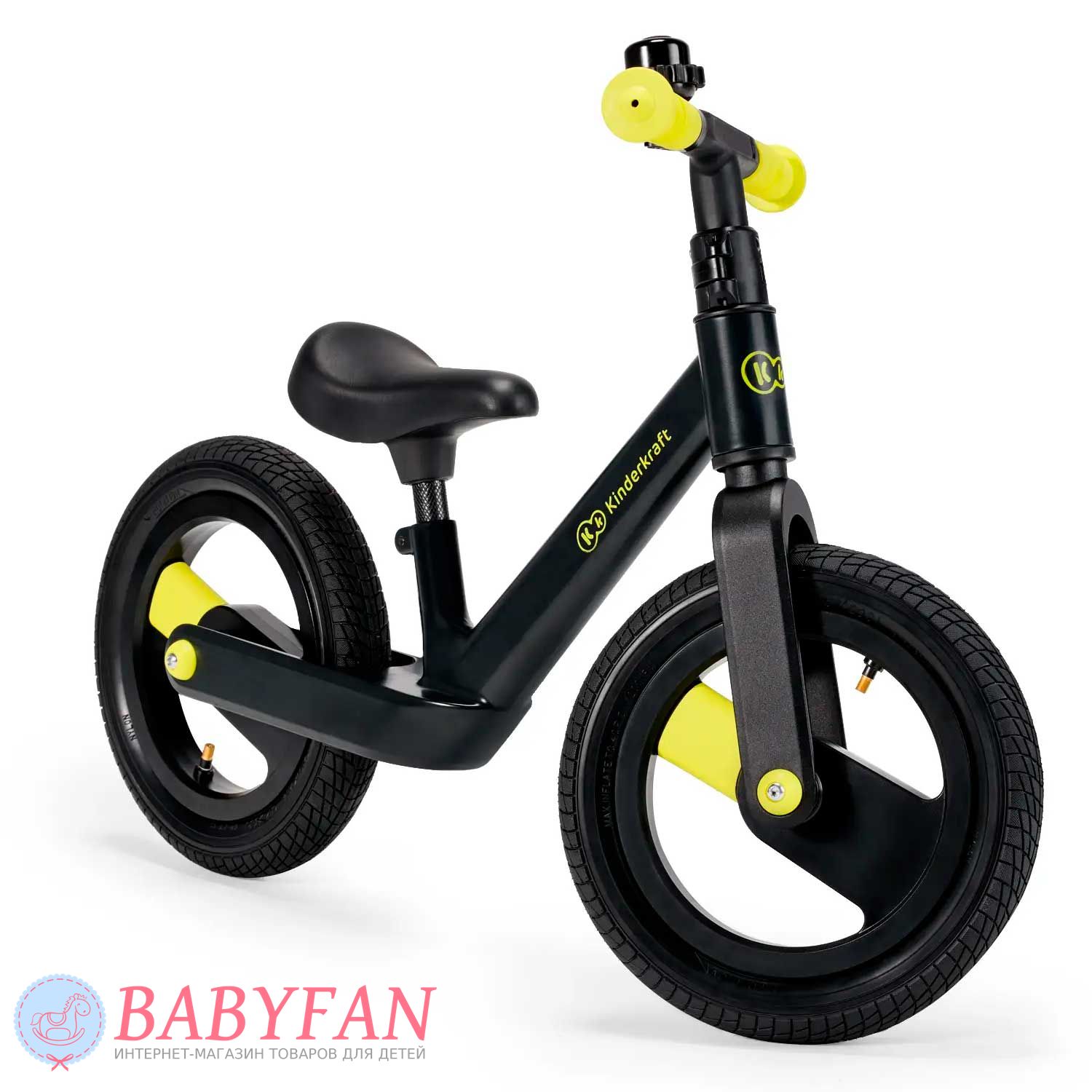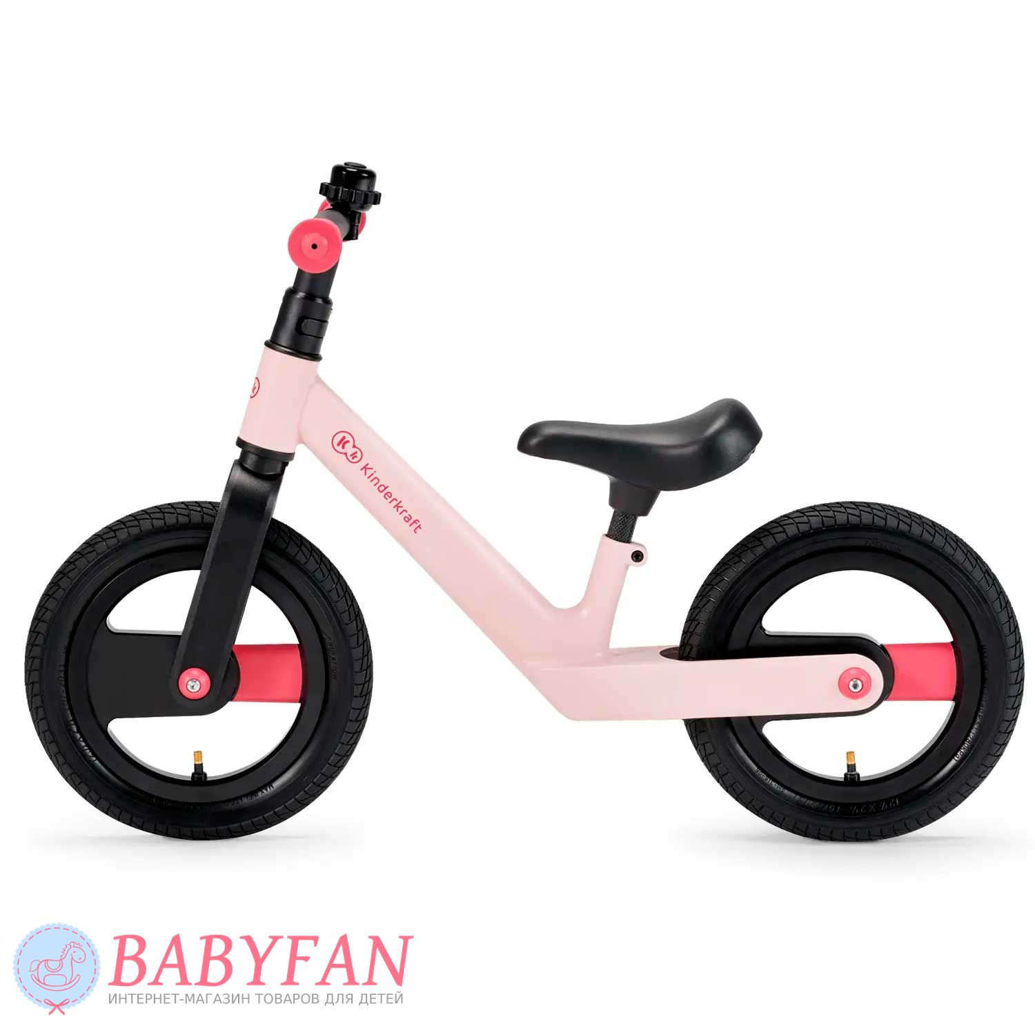 Kinderkraft Goswift – легкий та міцний двоколісний беговел з рамою з магнієвого сплаву з надувними колесами для дітей від 3 до 6 років, понад 80 см. Виконаний у вигляді спортивного велосипеда без крил. Виготовлений з міцних та довговічних матеріалів: рама з магнієвого сплаву, який на 30% легший за алюміній, відмінно поглинає вібрації і на 100% утилізується, покрита стійкою порошковою фарбою; сидіння м'яке, з екошкіри; покришки коліс із гуми, з протектором.
