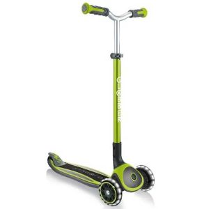 Globber Master Lights – це легкий 3-колісний складаний самокат із колесами, що світяться, для дітей від 4 до 14 років вагою до 50 кг. Виконаний у класичному та сучасному дизайні. Виготовлений із якісних та міцних матеріалів: металева рульова стійка, легка пластикова дека, колеса з поліуретану, грипси із термопластичної гуми. В міру зросту дитини кермо регулюється по висоті. Завдяки запатентованій системі самокат легко і компактно складається – ручка опускається до деки. Під час руху колеса самоката світяться червоним, зеленим та синім кольорами. Як джерело живлення служить динамо-машина, вбудована в колеса – батарейки не потрібні. Чим швидше рухається самокат, тим яскравіше світять колеса.